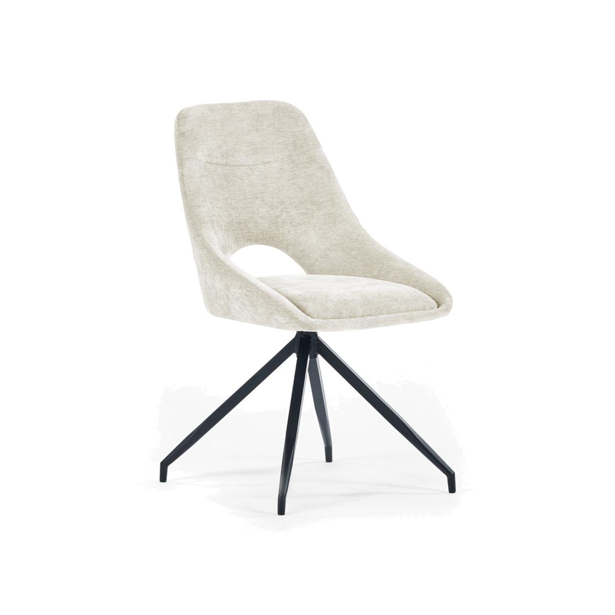 Bring warmth and modern style to your space with these elegant swivel dining chairs. Upholstered in a luxurious cream chenille fabric, it features a generously wide, cushioned seat designed for relaxed dining and everyday use. The smooth return swivel function makes movement feel effortless, while the bold black metal base provides a striking contrast and sturdy support. Ideal as statement dining room chairs, they bring a stylish, contemporary touch to any interior. Assembly is simple, just attach the base. Table sold separately.