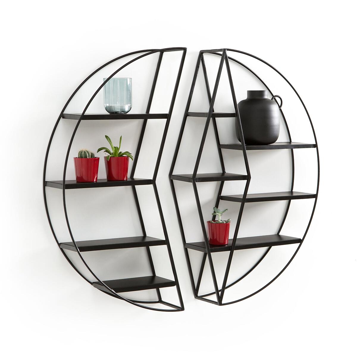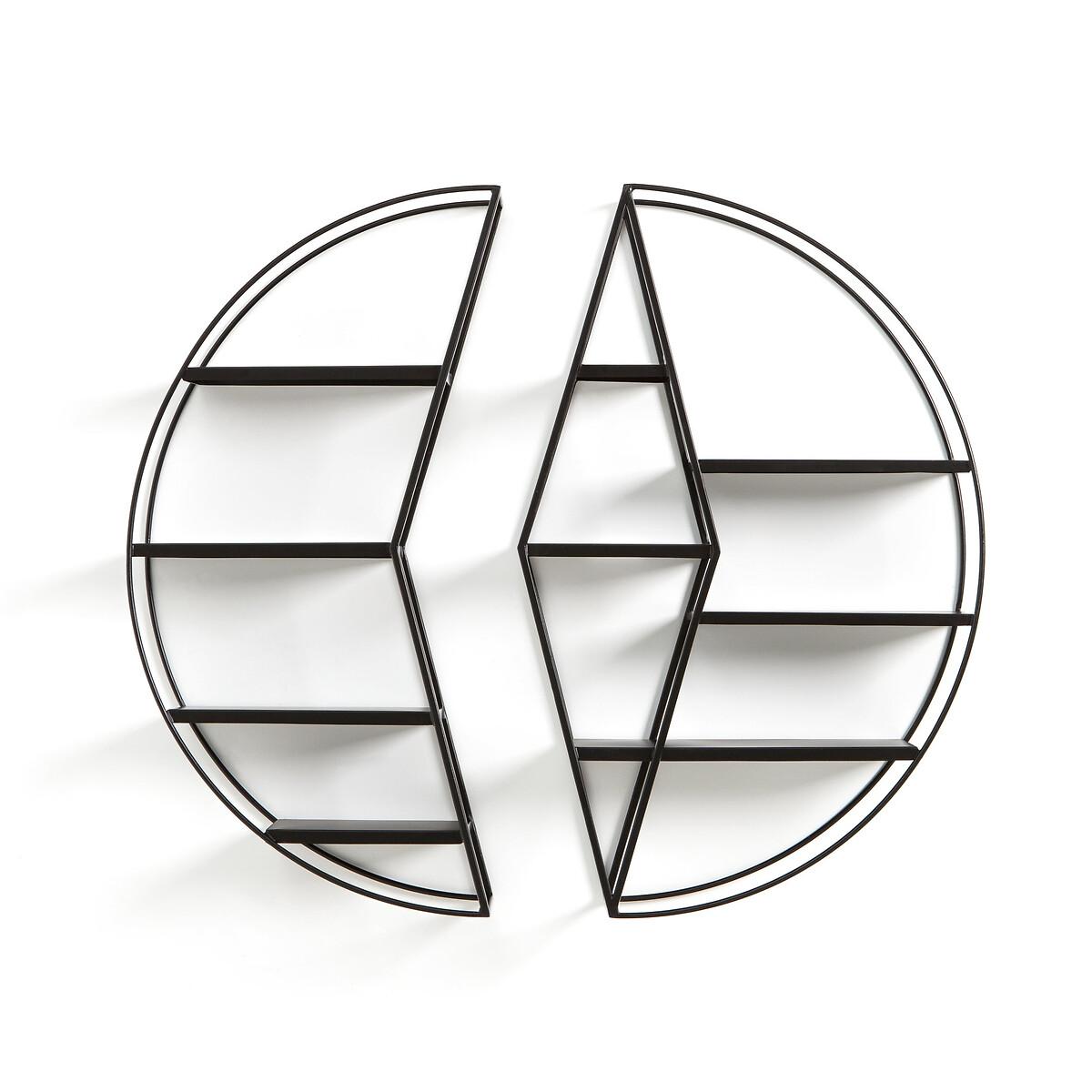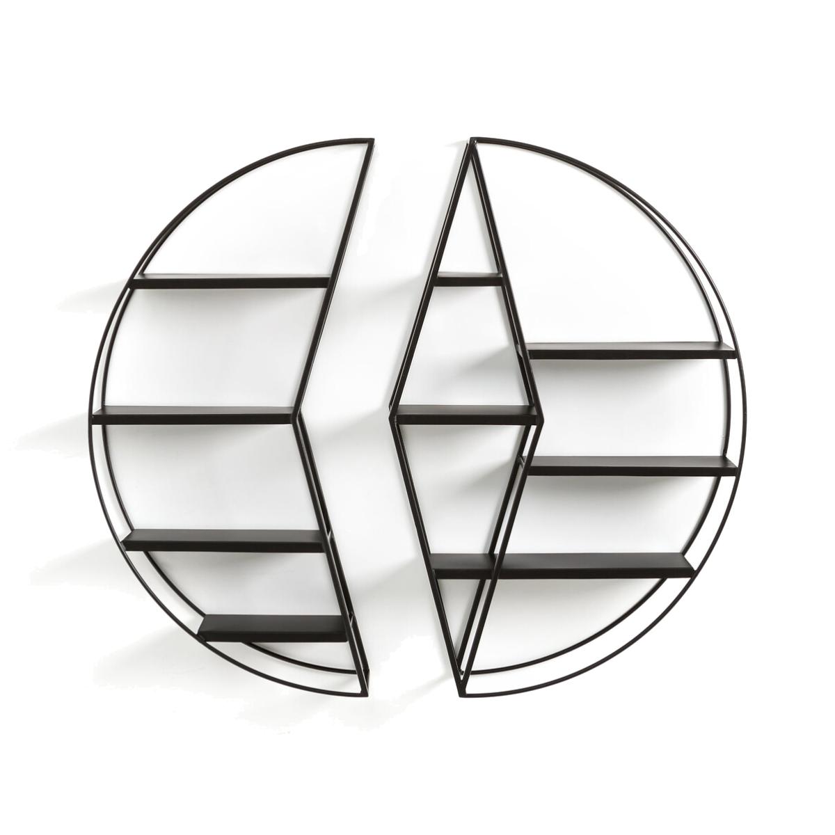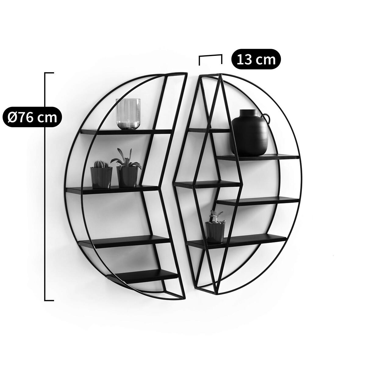The Kano graphic wall shelving unit. Minimalist and practical, this double wall shelving unit offers storage for your belongings as well as a design-led piece for your wall. Tidy away trinkets or decorative objects...Product Details • Steel and iron covered with epoxy paint • Shelves to be fixed to the wall, together or separate • Wall fixing (screws and plugs not supplied)Dimensions • Diameter 76 x Depth 13cm