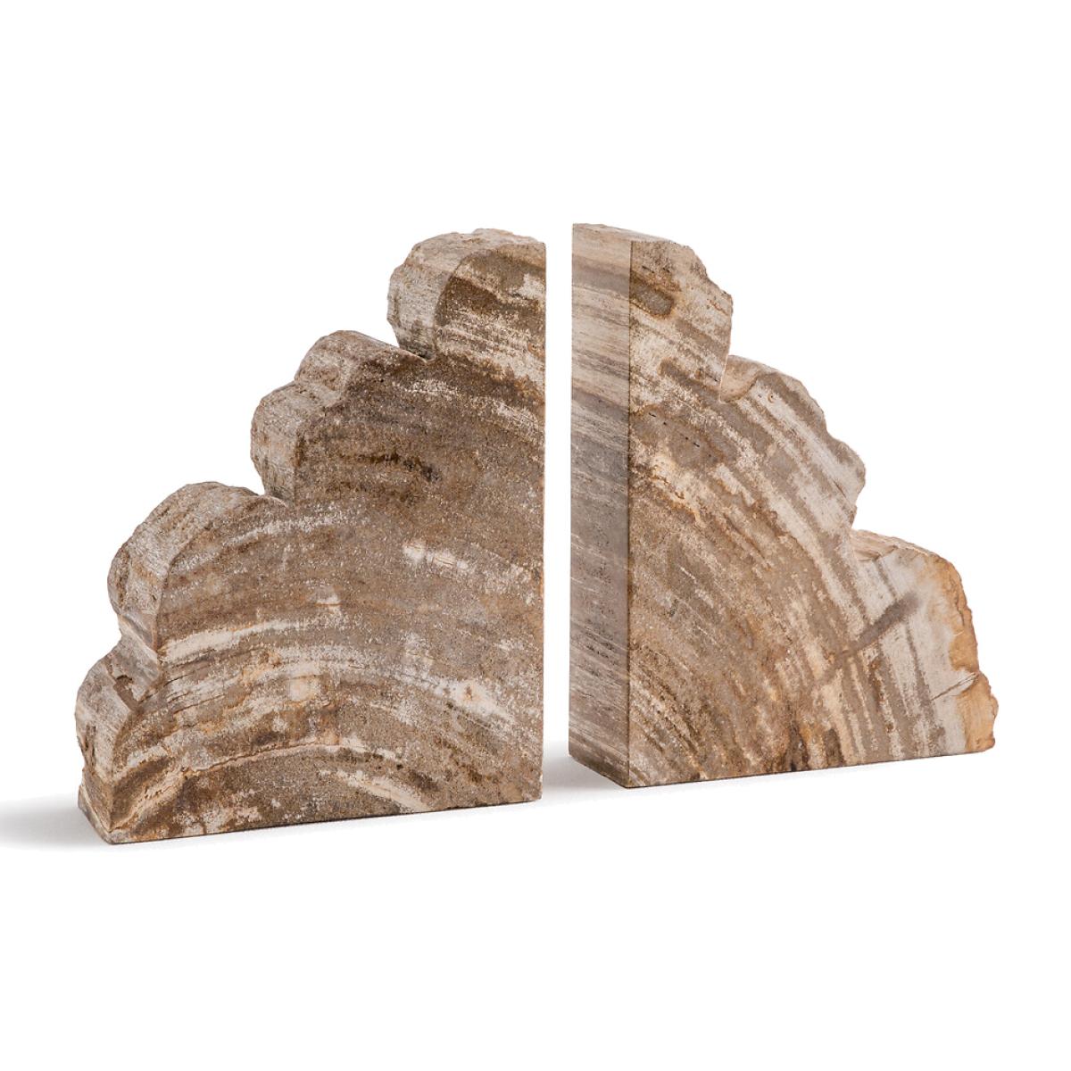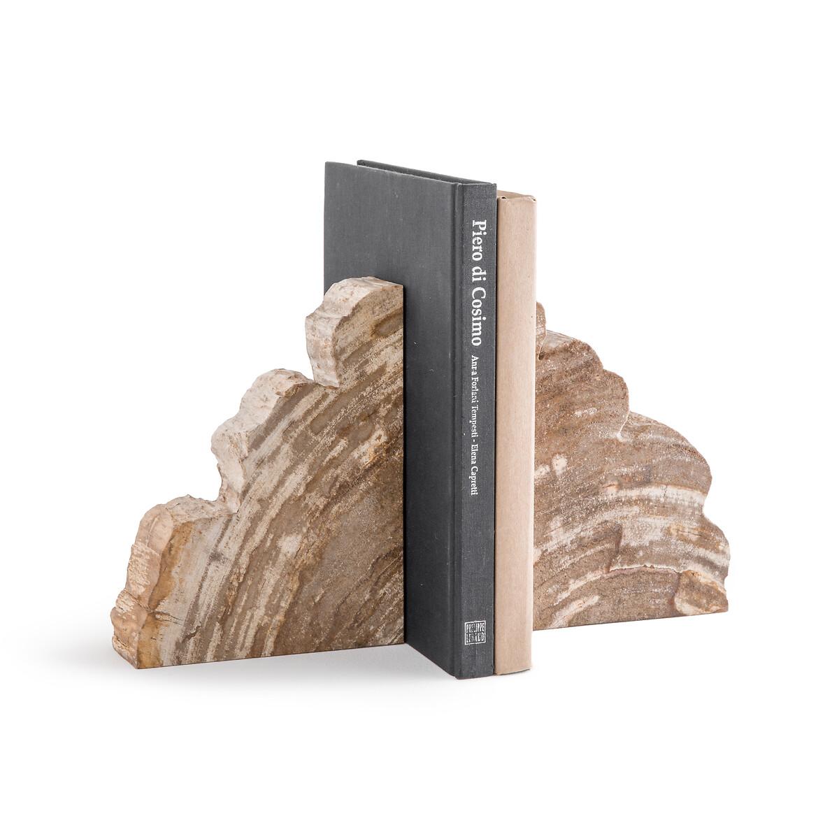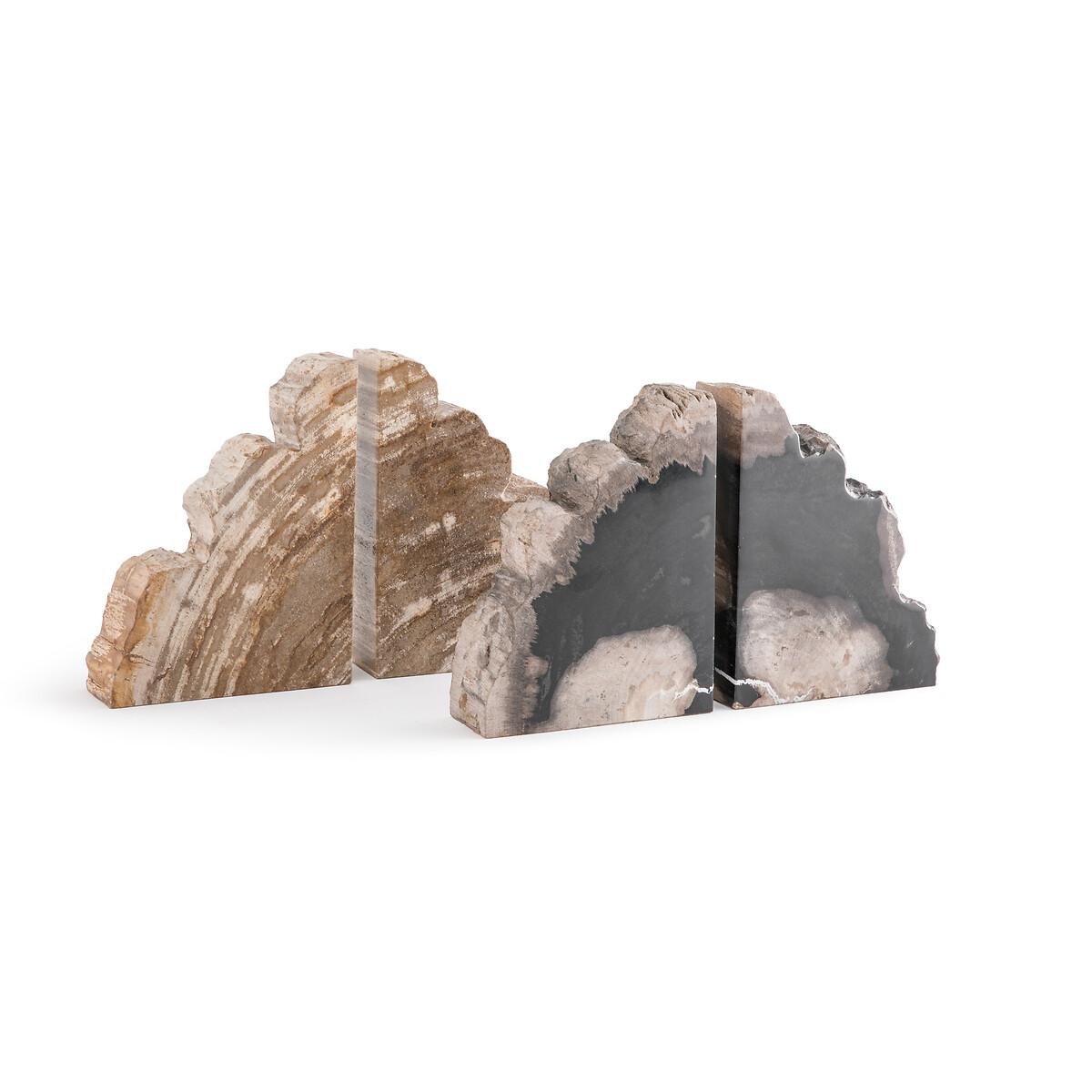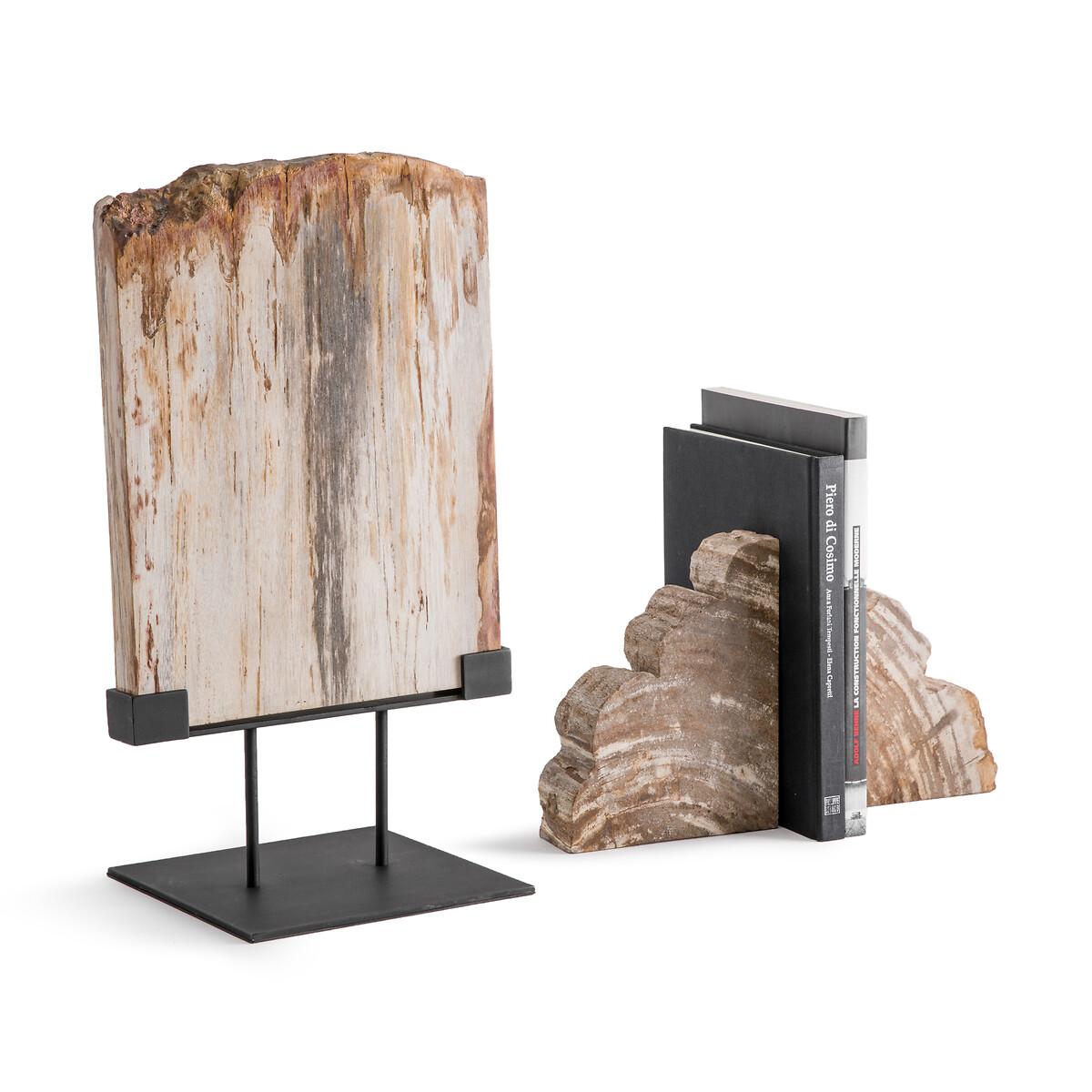 More than a useful and beautiful decorative object, it is a work of art shaped by nature. The growth rings of the petrified tree create an incomparable aesthetic. Each piece is unique and reveals its own colour palette. Between raw naturalness and extreme sophistication. Product Details • Petrified wood • Sold in packs of 2. Quality Info • Petrified wood, also called “fossilised wood”, embodies timeless elegance by revealing the beauty of nature. • Through a long process of fossilisation, organic wood is impregnated with minerals such as quartz, calcite and jasper.. It transforms over millennia into a work of stone, retaining all the details of its original structure.. • Meticulously quarried and polished by hand, each piece of petrified wood is unique. • Its shades can range from grey to red, including beige, brown or even black.. The colour of the product received is therefore random and can vary from the lightest to the darkest tone.. • To preserve its beauty, keep it away from a window exposed to sunlight and rooms subject to extreme fluctuations in temperature or humidity. Care Advice • 1. Clean with a soft, slightly damp cloth. • 2. Ban scrubbing sponges and harsh cleaning products. • 3. Handle it with care: even though it is solid, petrified wood can break or crack if dropped or violently impacted. Dimensions. Each piece: • Width: 18cm • Height: 28cm • Depth: 5cm Parcel dimensions and weight • 1 parcel • L42 x H27 x D34cm. 5kg