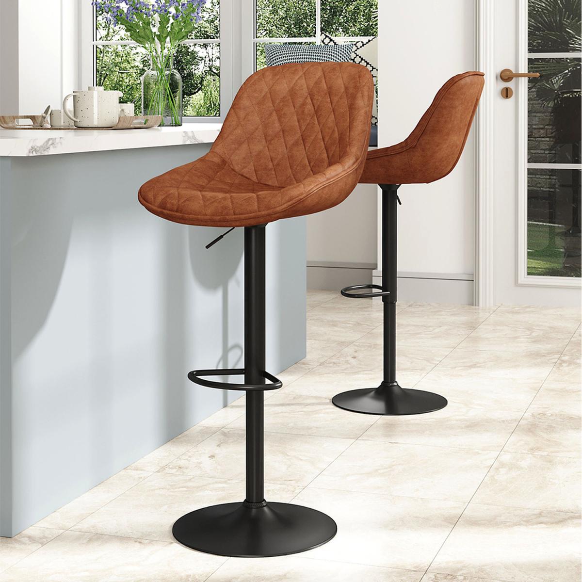 With this PU Leather Bar Stool, you can enjoy dining or socializing in both comfort and luxury. The ergonomically designed backrest features a curved shape that enhances the seat's comfort, allowing you to lean back and rest your legs on the footrest for a relaxed sitting position. The base is powder-coated, ensuring long-lasting protection against everyday wear and tear. The stool also features a 360-degree swivel seat, making it easy to turn in any direction for convenient conversations. Additionally, adjusting the height is simple with the gas lift lever located beneath the seat.