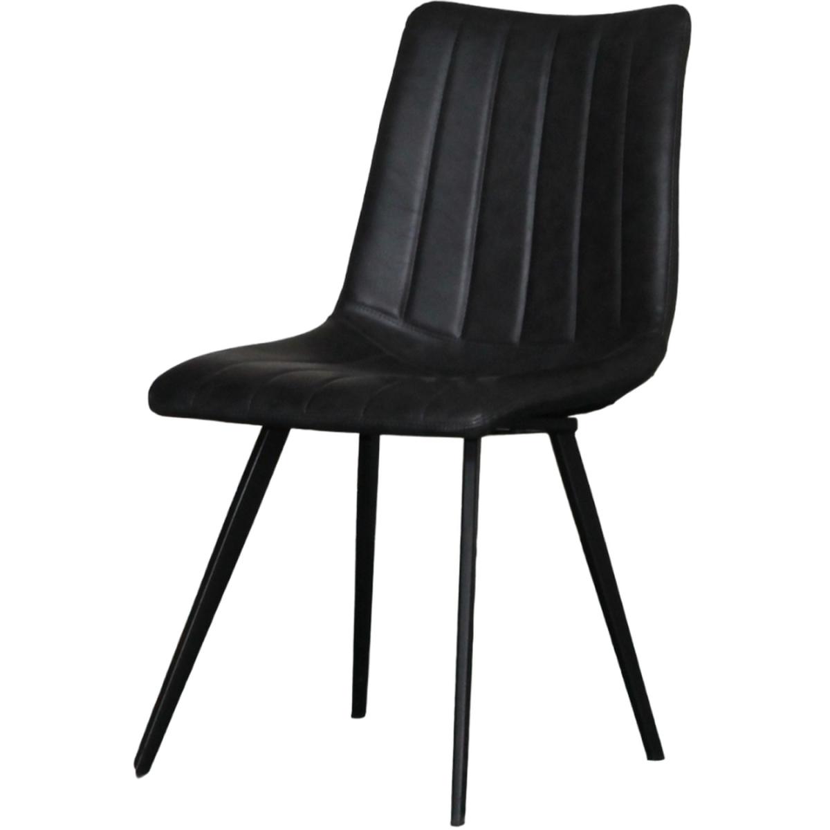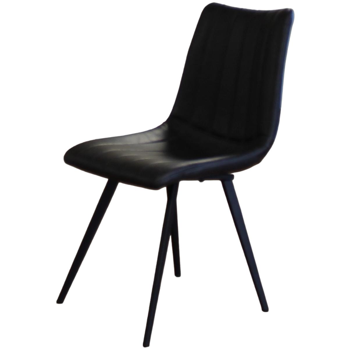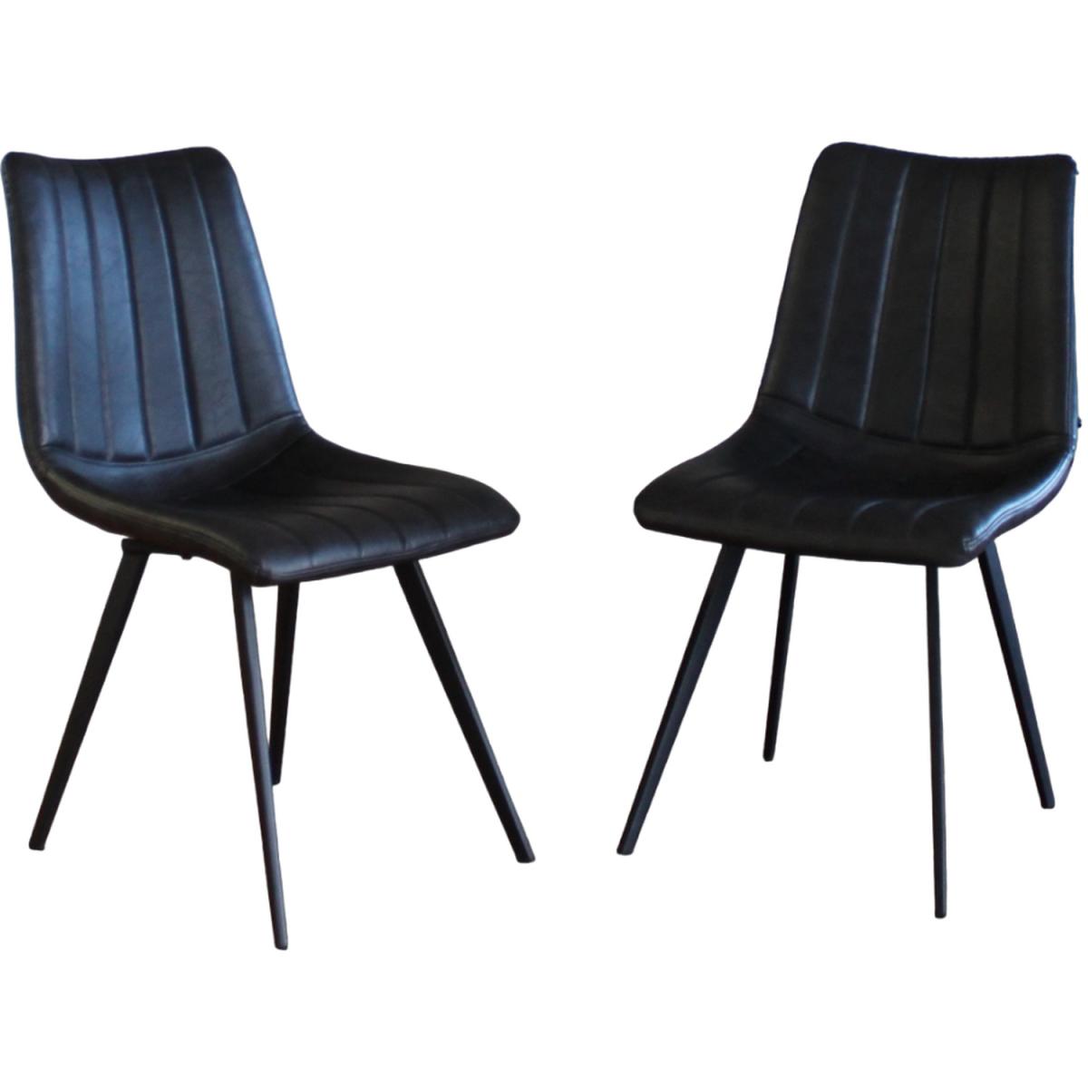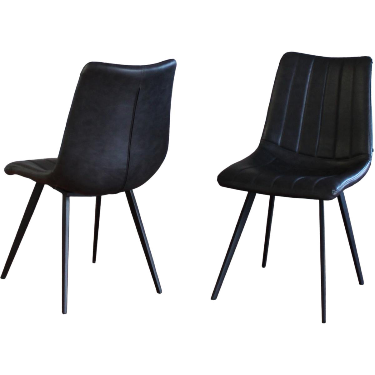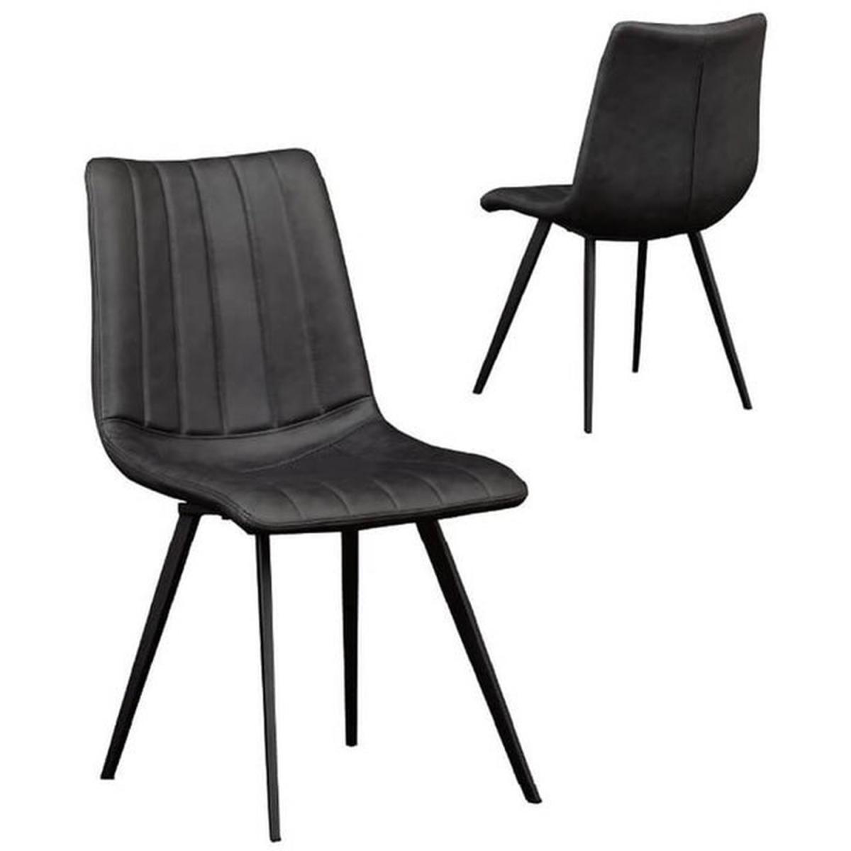 A new take on contemporary dining. The dining chairs' sleek modern aesthetic features striking vertical accent stitching, adding subtle detail to its simple and elegant design. An easy-to-clean soft vegan leather seat is perfectly shaped for comfort, so guests and hosts alike can relax after the digestif is served. Cozy & Comfort : The seat and back are padded with foam and wrapped in faux leather with elongated vertical stripes stitching for a tailored touch. A Sleek Look : The matching design features a contemporary silhouette with a full, wingback and elegant tapered metal legs. Chic Modern : This 2-piece set of eye-catching dining chairs elevates your space with just the right amount of over-the-top glamor. More Stable : This chair is founded atop practically felt foot pads to protect your floors from scratches and scuffs.