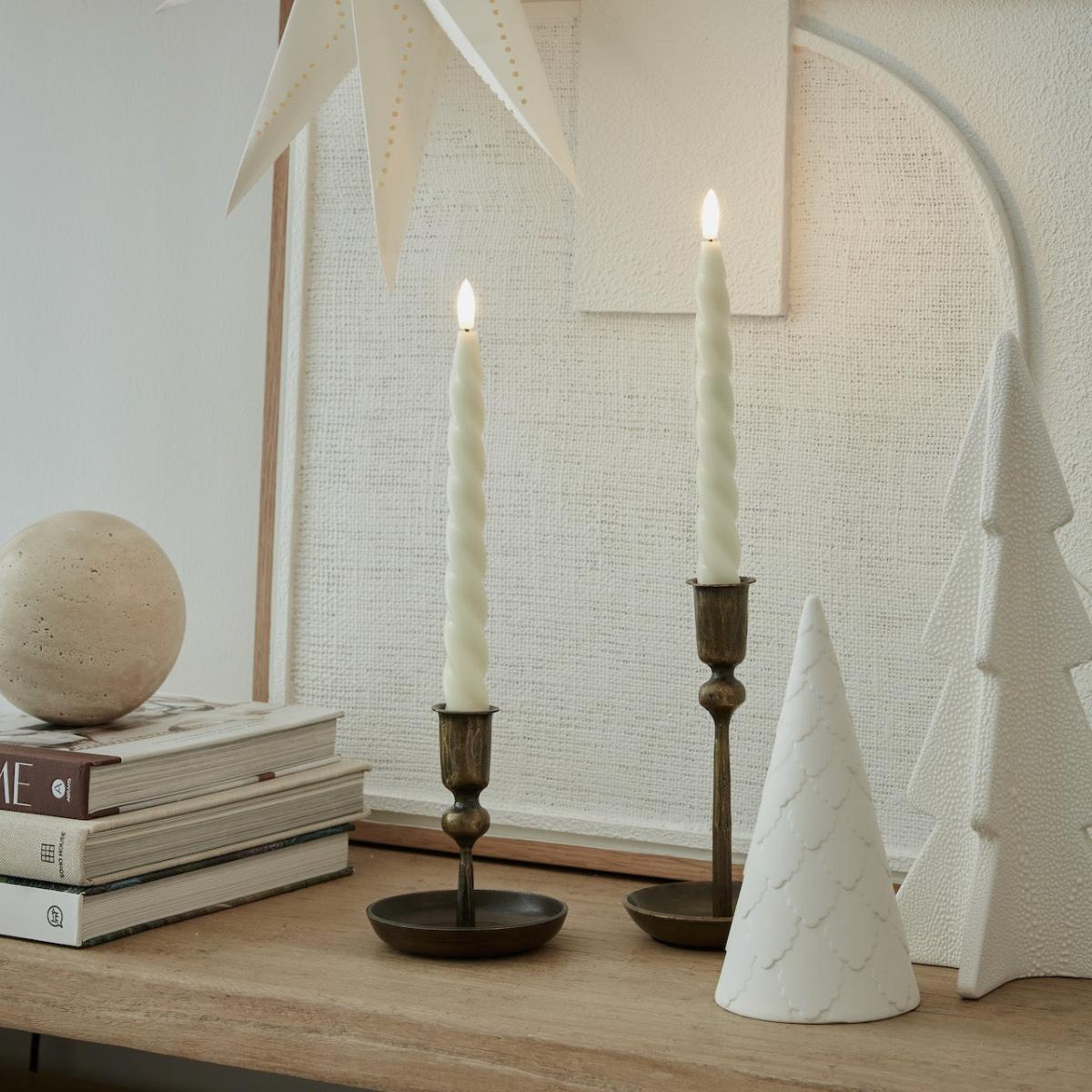 A pretty set of 2 Ivory twist LED candles. Place on your sideboard or table to create a stylish soft ambience in your home.