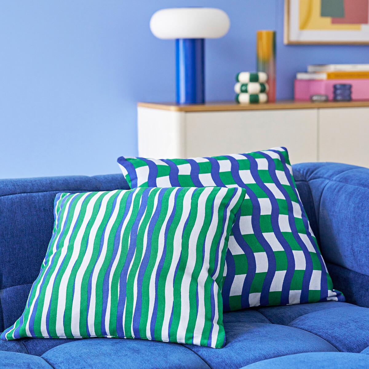 I love this set of two lia graphic cushions for their bold, geometric pattern and vibrant colour palette, which can add a contemporary edge to both neutral and more colourful interiors. They work particularly well in modern or minimalist schemes, where their eye-catching design becomes a statement piece. For styling tips, consider pairing them with solid-coloured cushions in coordinating shades to balance the look, or pop them on a plain sofa or armchair to inject visual interest. Their 100% cotton fabric makes them practical for everyday use, and their size is perfect for adding a splash of colour without overwhelming the space.