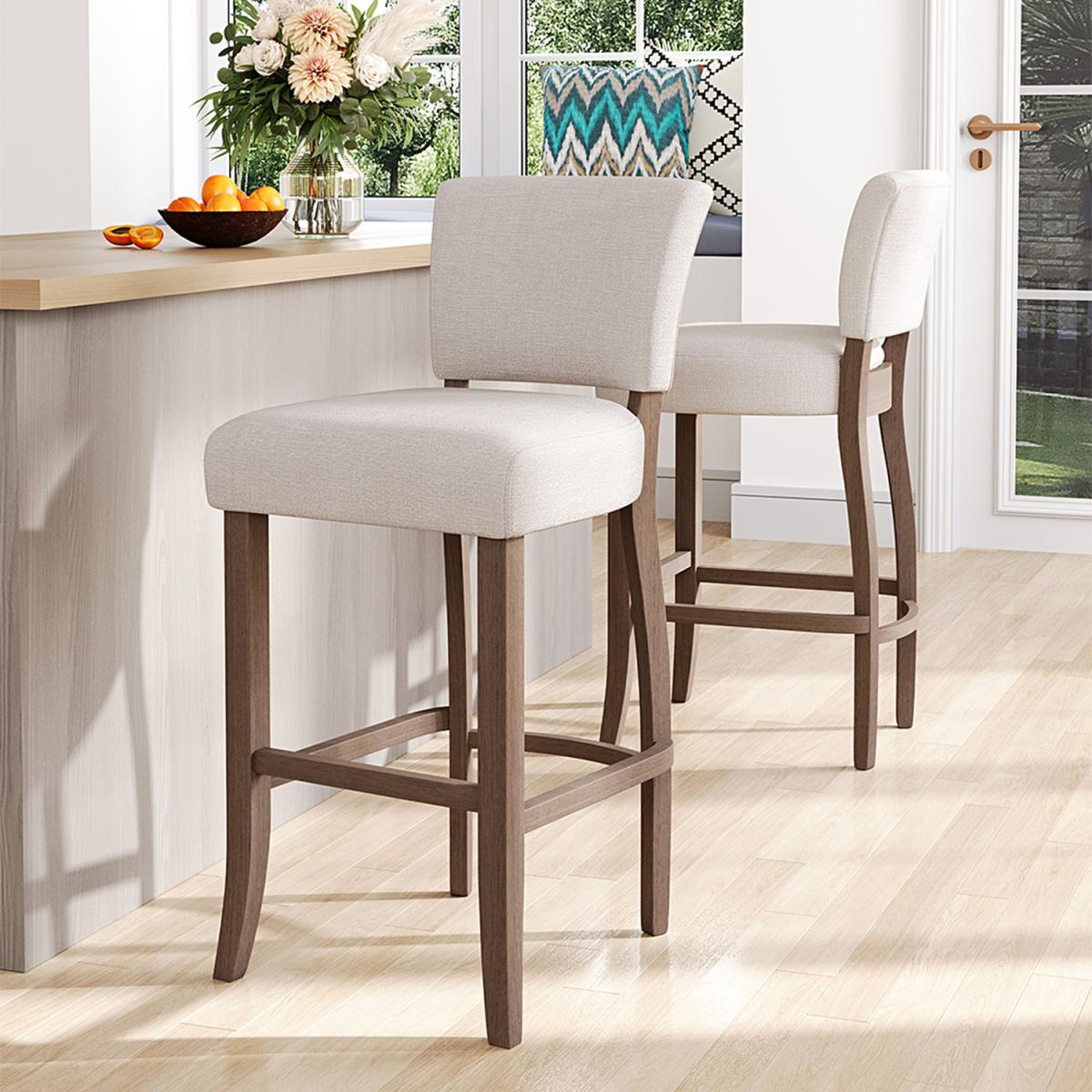 Set of 2 Linen Bar Stools Dining Chairs - Beige