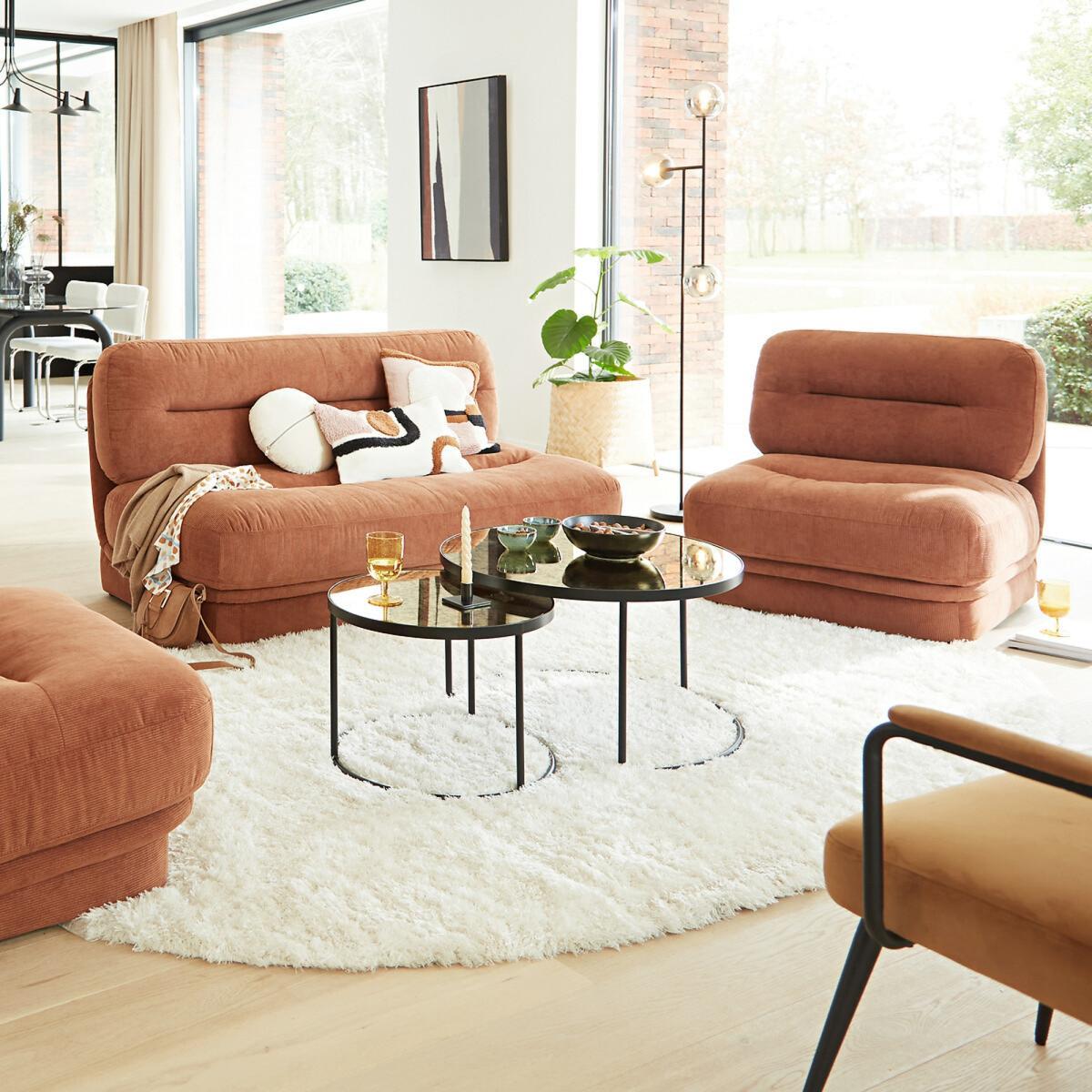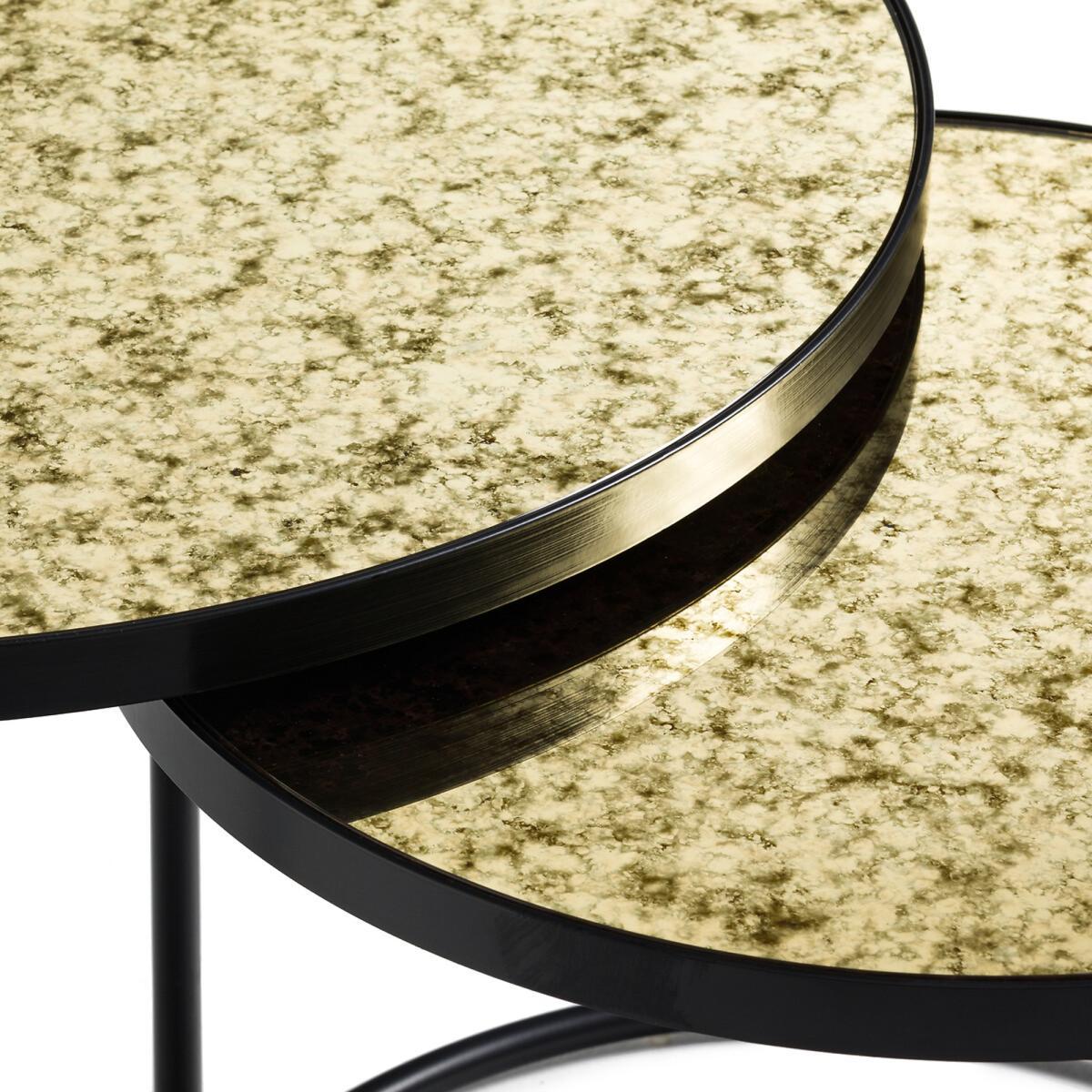 Lipstick nesting round tables. A delightful combination of steel and mirror-effect tempered glass for an elegant and timeless style. A design exclusive to La Redoute Interiors.