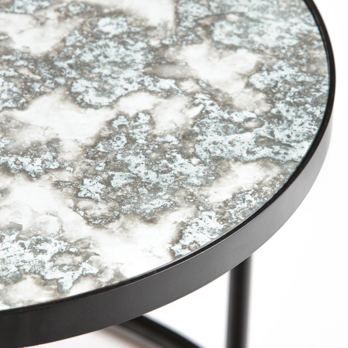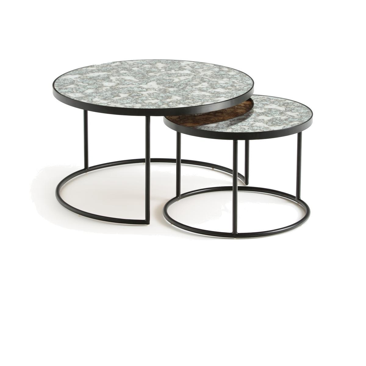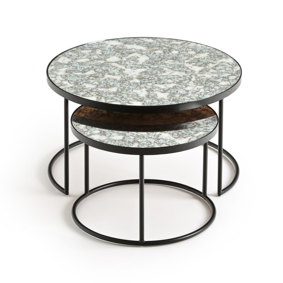 Lipstick semi-nesting round tables. A successful combination of steel and tempered glass with a mirror effect for an elegant and timeless style.