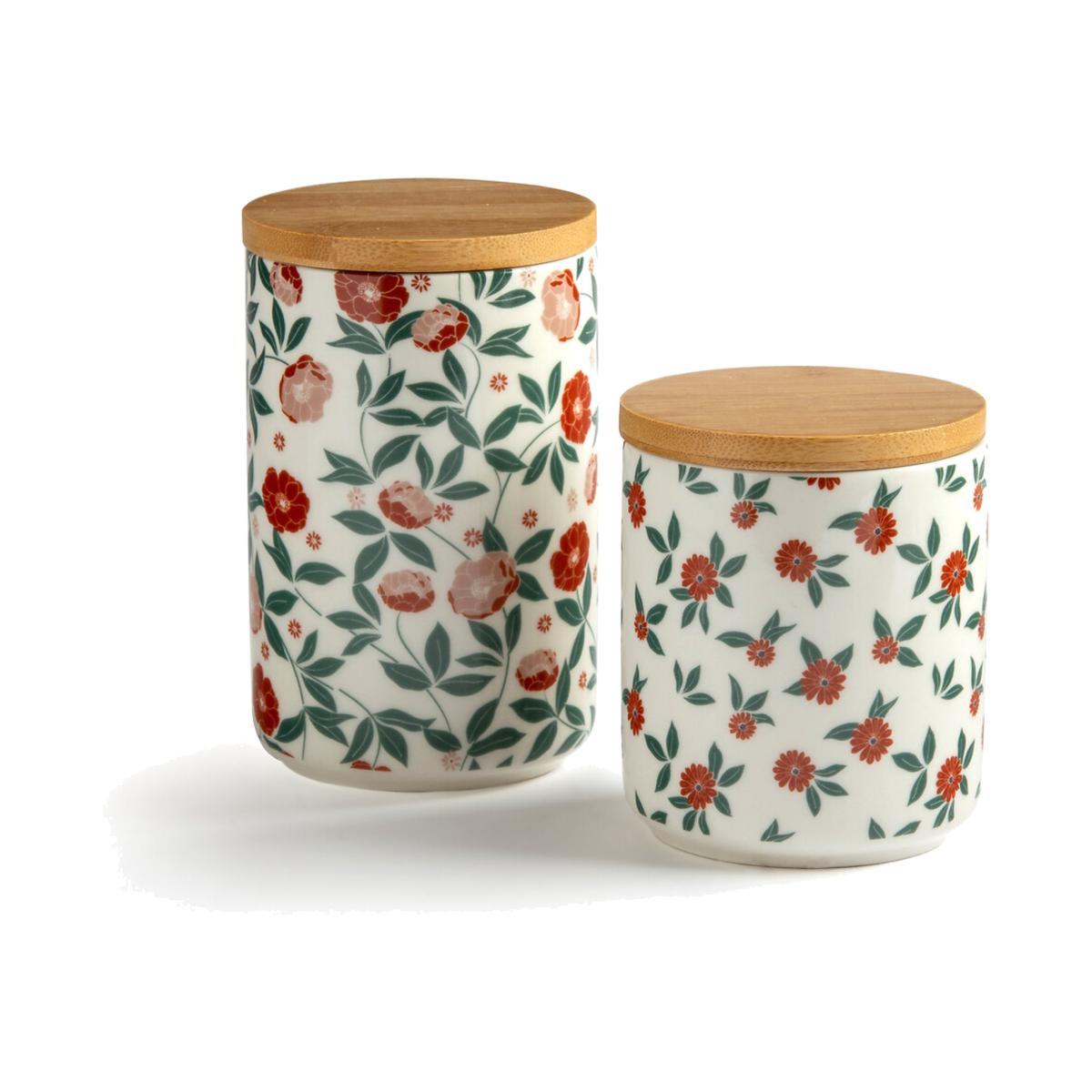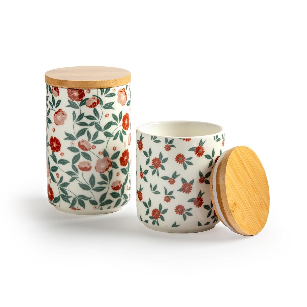 Store your spices, dried fruits or teas well away from light and ambient air with this set of 2 storage jars with a charming ceramic floral pattern and airtight bamboo lid. Product Details. Ceramic body. Set of 2, different patterns. Airtight bamboo lid. Care Advice:. Remove the lid before putting in the dishwasher. Dimensions. Small size: Diameter 9.5 x H 13cm. Large size: Diameter 9.5 x H 16.5cm. Browse our collection of tableware online at La Redoute.