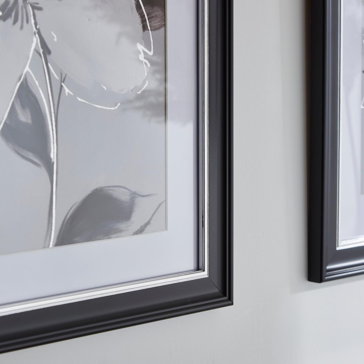 Indulge in the beauty of our Set of 2 Luxe Florals Framed Prints. These modern masterpieces showcase intricate, detailed prints of flowers, accentuated with shimmering silver foil details. Enhancing their allure, the black framed edge adds a touch of contemporary elegance, making these prints a perfect addition to any interior decor. Effortless hanging is made possible with the fitted triangle hook, allowing you to showcase the Luxe Florals Framed Prints with ease and sophistication. Transform your space with the timeless charm of these artful creations, and let the delicate beauty of flowers grace your walls in a truly luxurious fashion. Please note: this piece cannot be placed in bathrooms.
