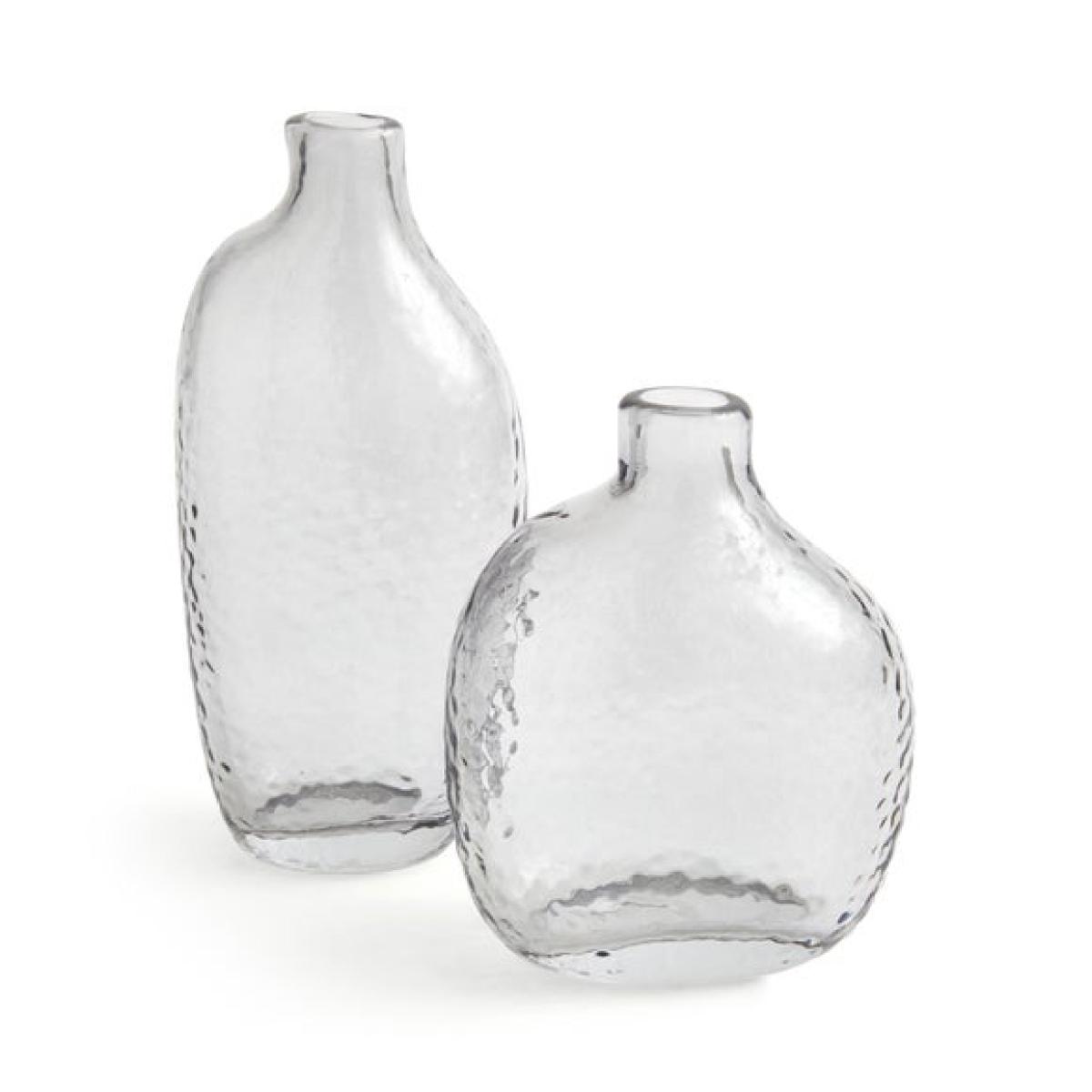* Set of 2 * Hand blown * Each piece is unique * Textured, hammered glass * Organic shapes These two Luxe hammered glass bud vases offer a lovely way to display your favourite single stems. Each vase is hand blown into a unique, organic shape, and their subtle grey tint adds a touch of understated elegance. The hammered texture catches the light beautifully, making them perfect for dotting around your home to bring a bit of nature indoors. This is a delightful pair, each with its own individual character.