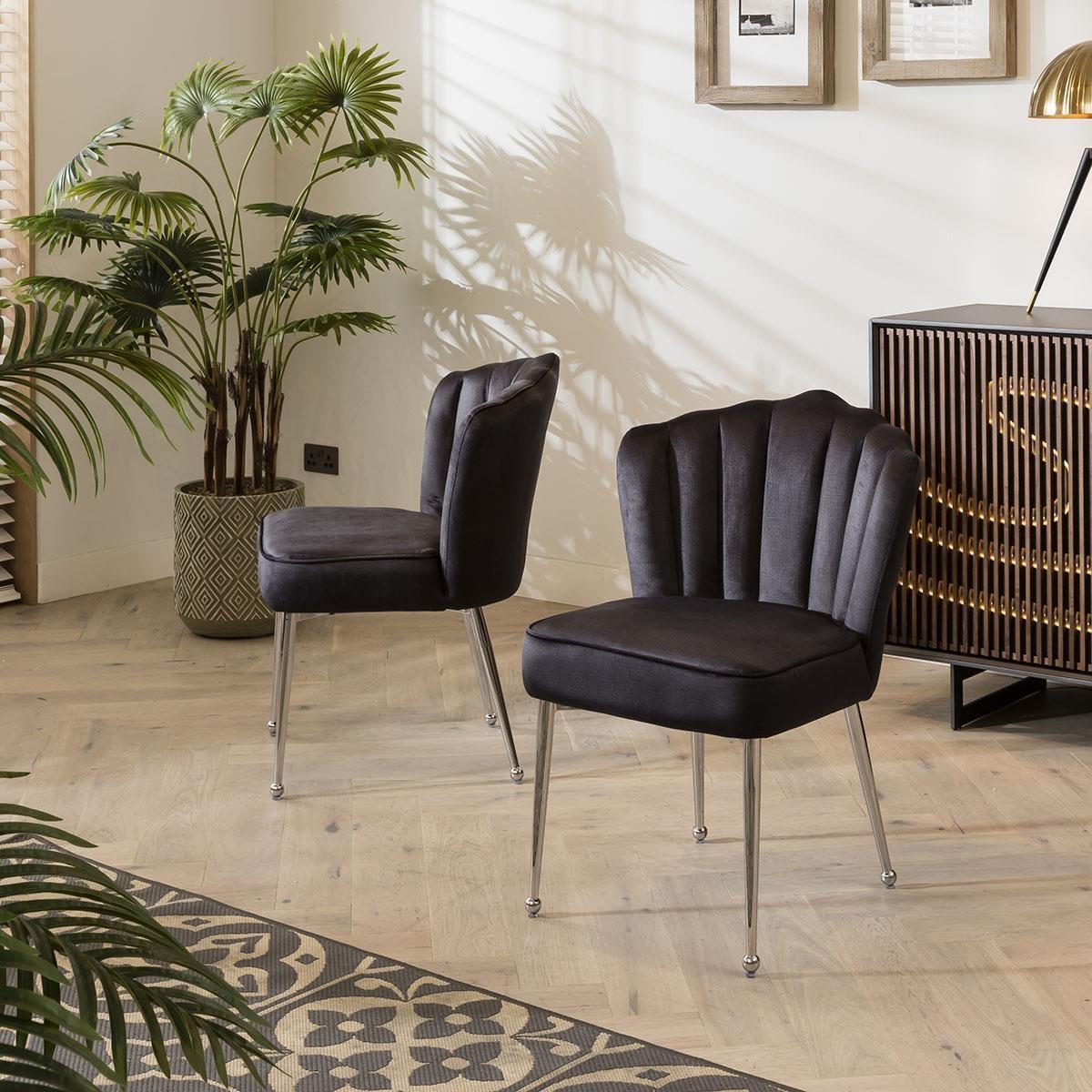 This stunning Jasmine Dining Chair is the perfect piece for your dining room or kitchen. The modern grey fabric colourway will complement an array of home decors with high quality soft fabric upholstery in an awe-inspiring charcoal shade. The contemporary Shell Back Dining Chair is complete with a foam-filled seat and backrest to provide luxurious comfort and lustrous chrome legs. If you need more information about this product, use the Live Chat service to speak to the team or send us a message. Spread the cost our with interest-free finance options. Minimum spend applies.
