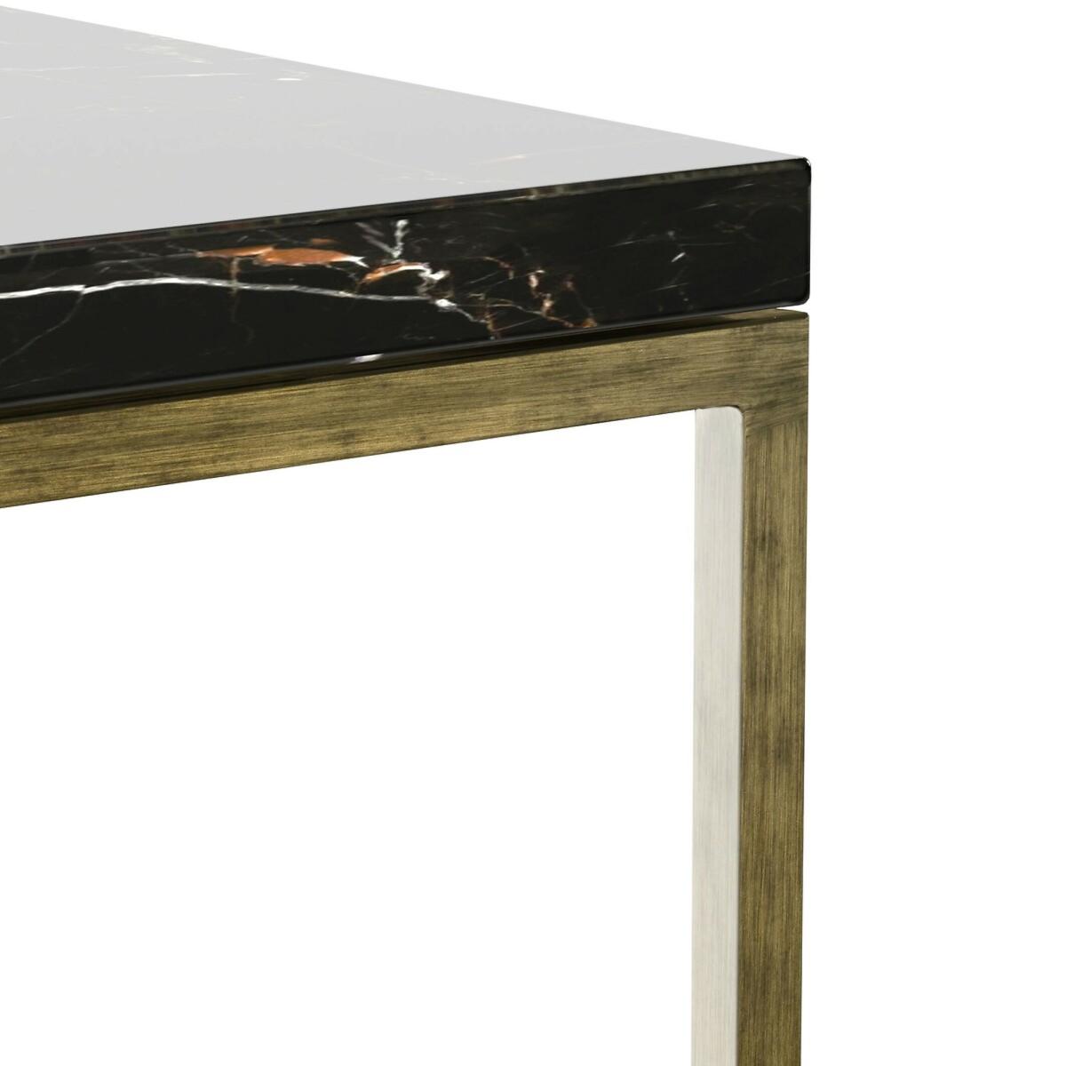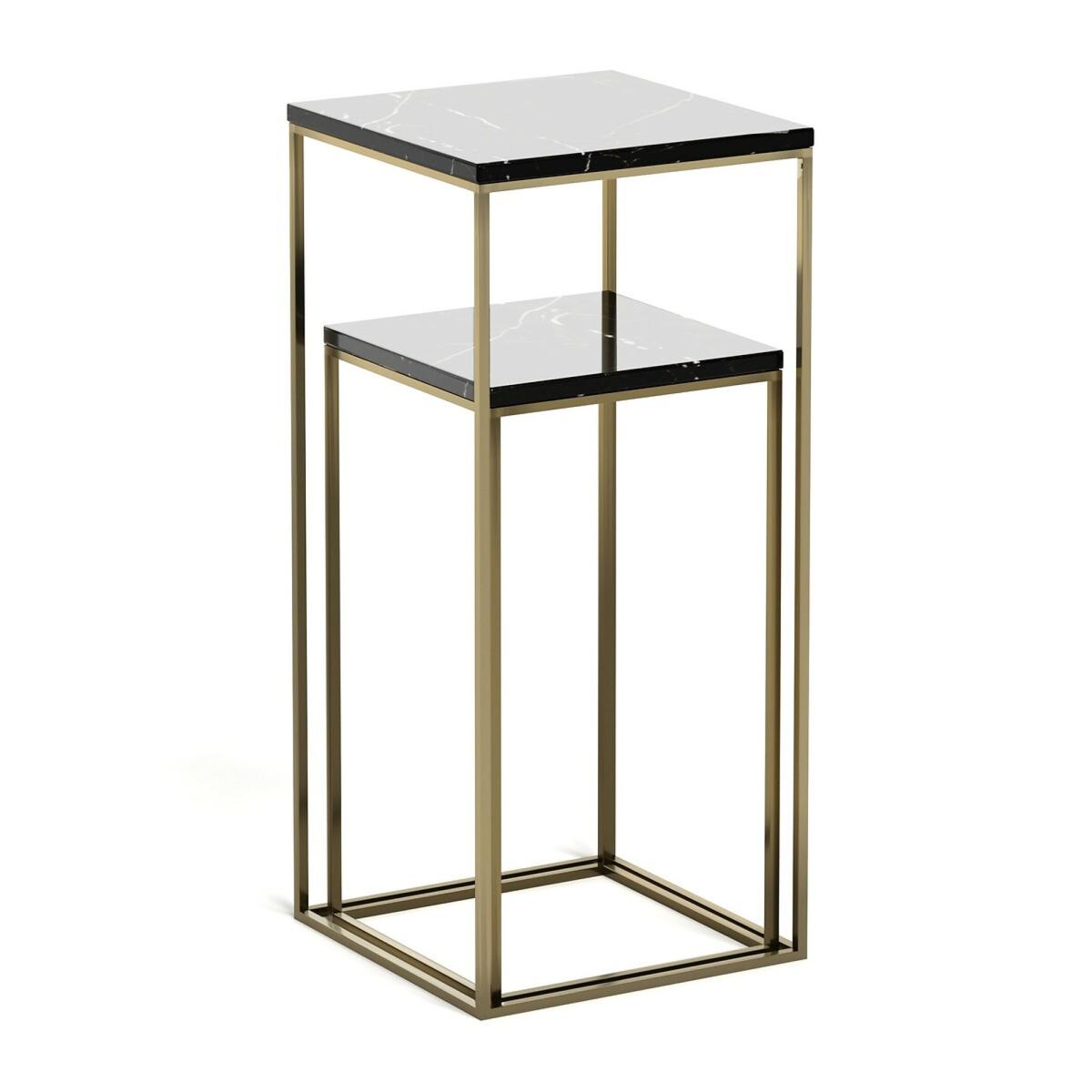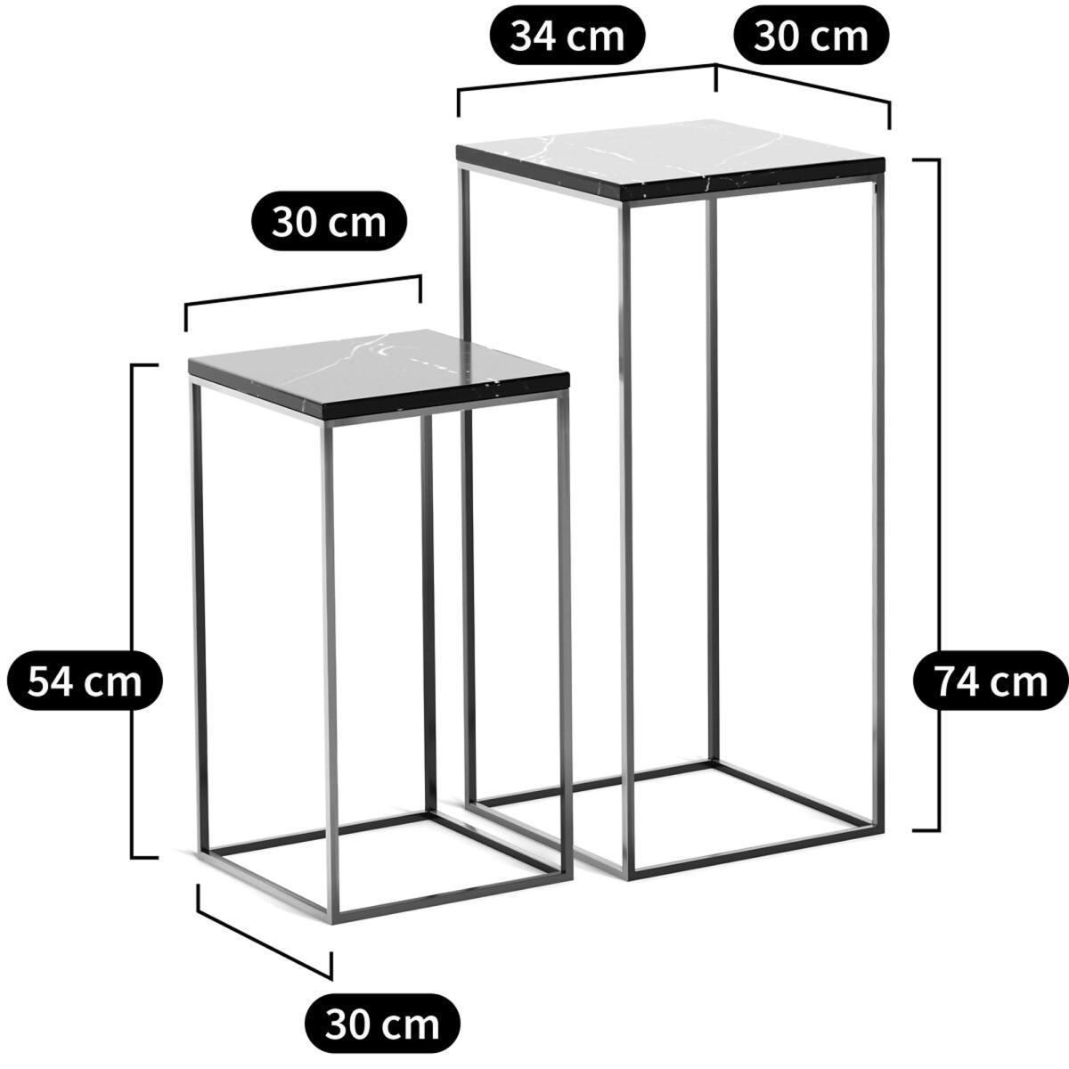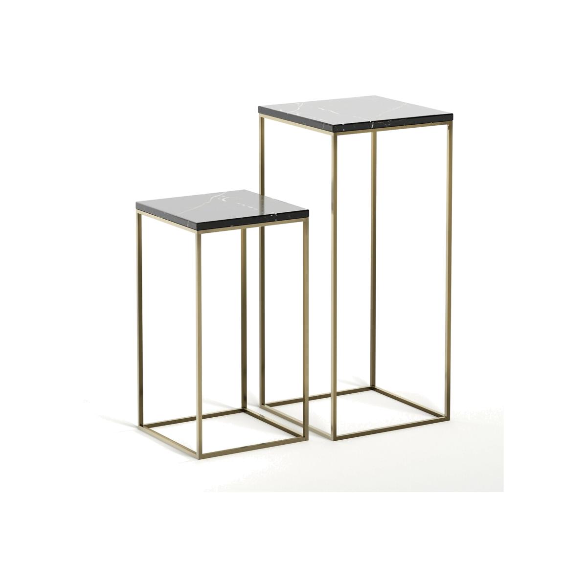 Set of 2 Mahaut marble top side tables. Elegance and simplicity combine to form this sleek, square-edged piece, the solid marble top creates a stunning contrast with its ultra fine metallic frame.