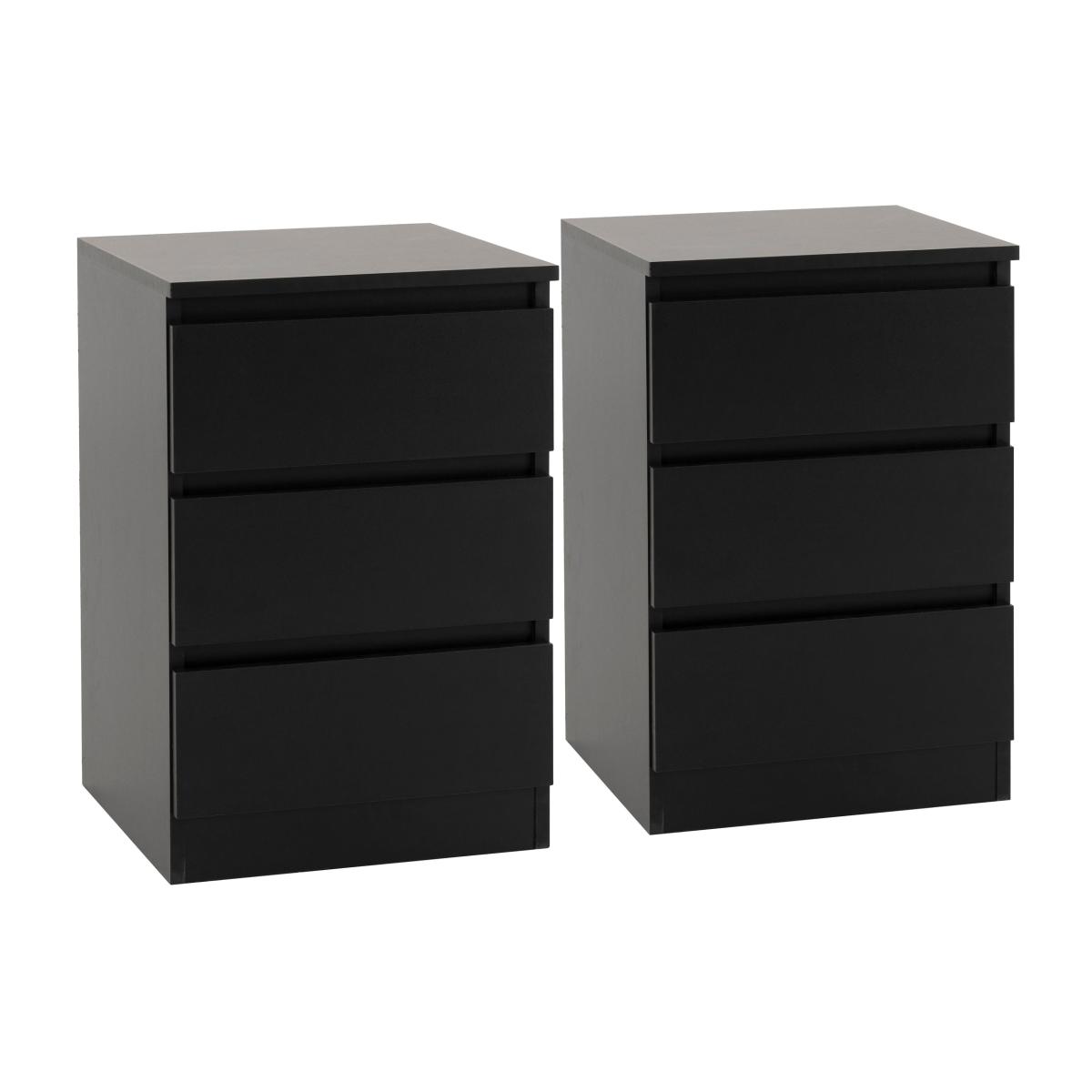 Set of 2 Malvern 3 Drawer Bedside Tables Black
