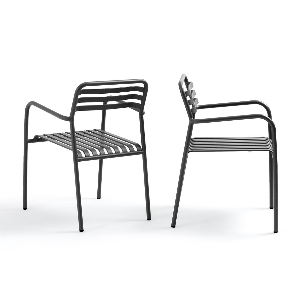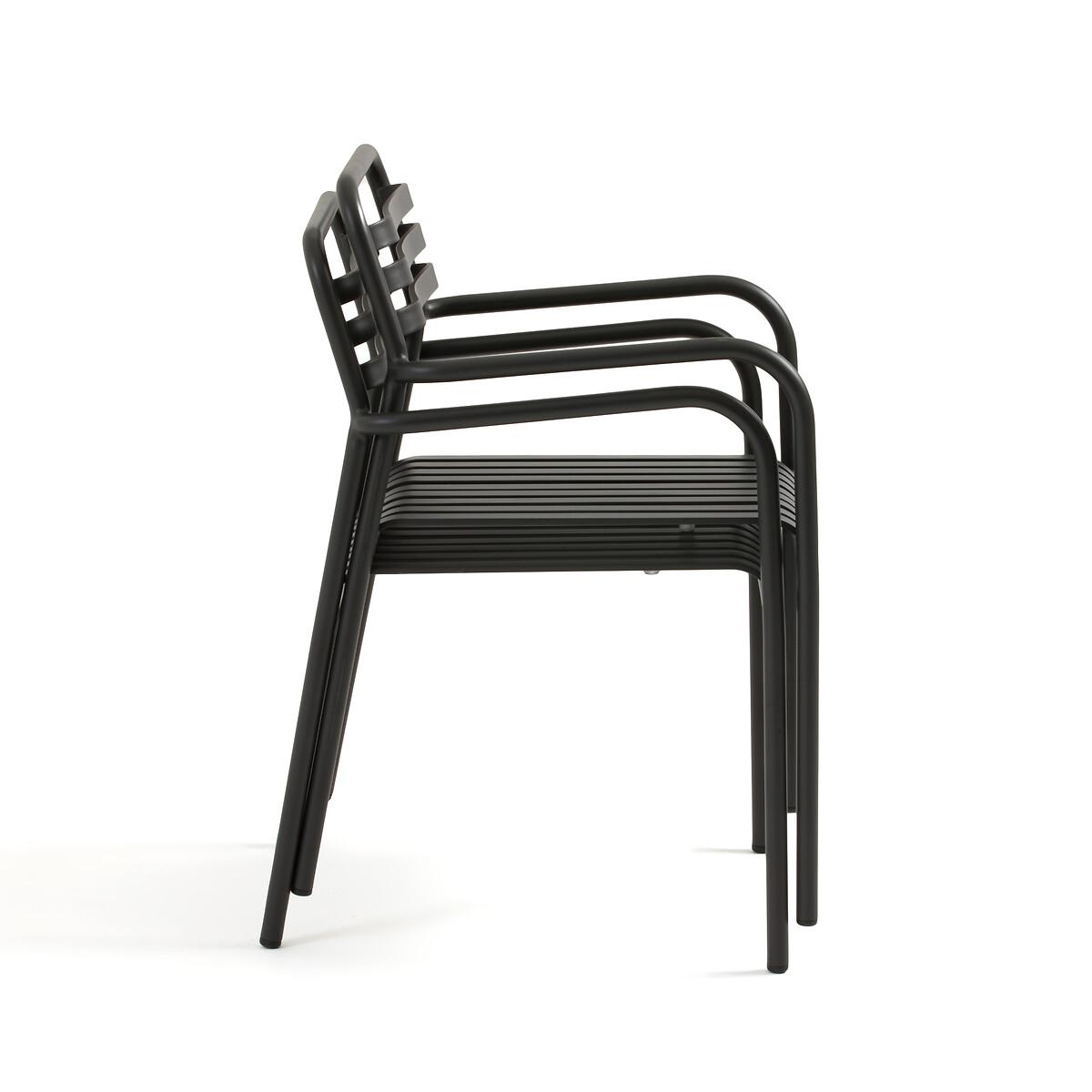 Entirely designed in aluminium, the Manni stackable armchair is very light and can be moved easily around the garden. Its legs designed in the extension of the armrests give it an elegant line and ensure great stability.