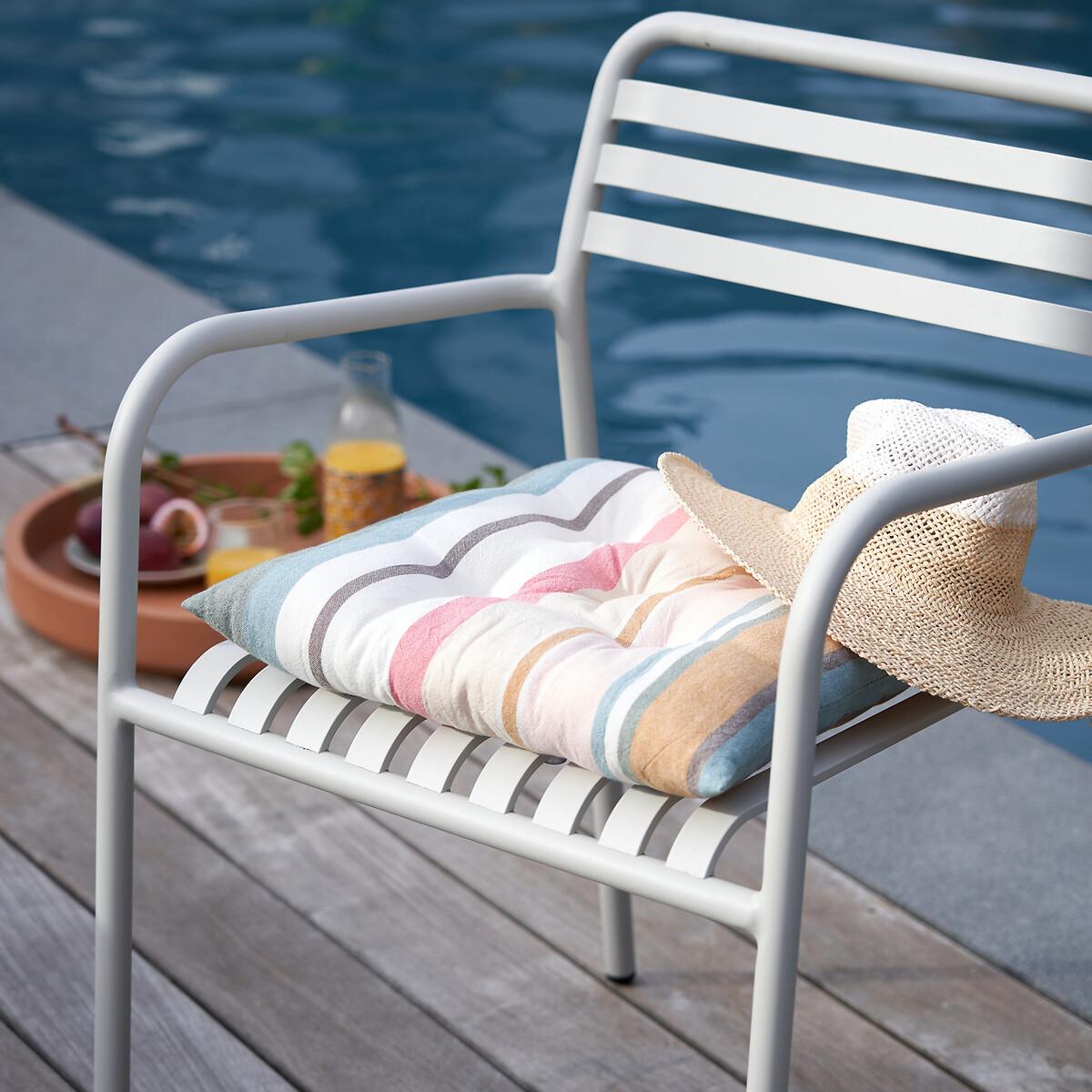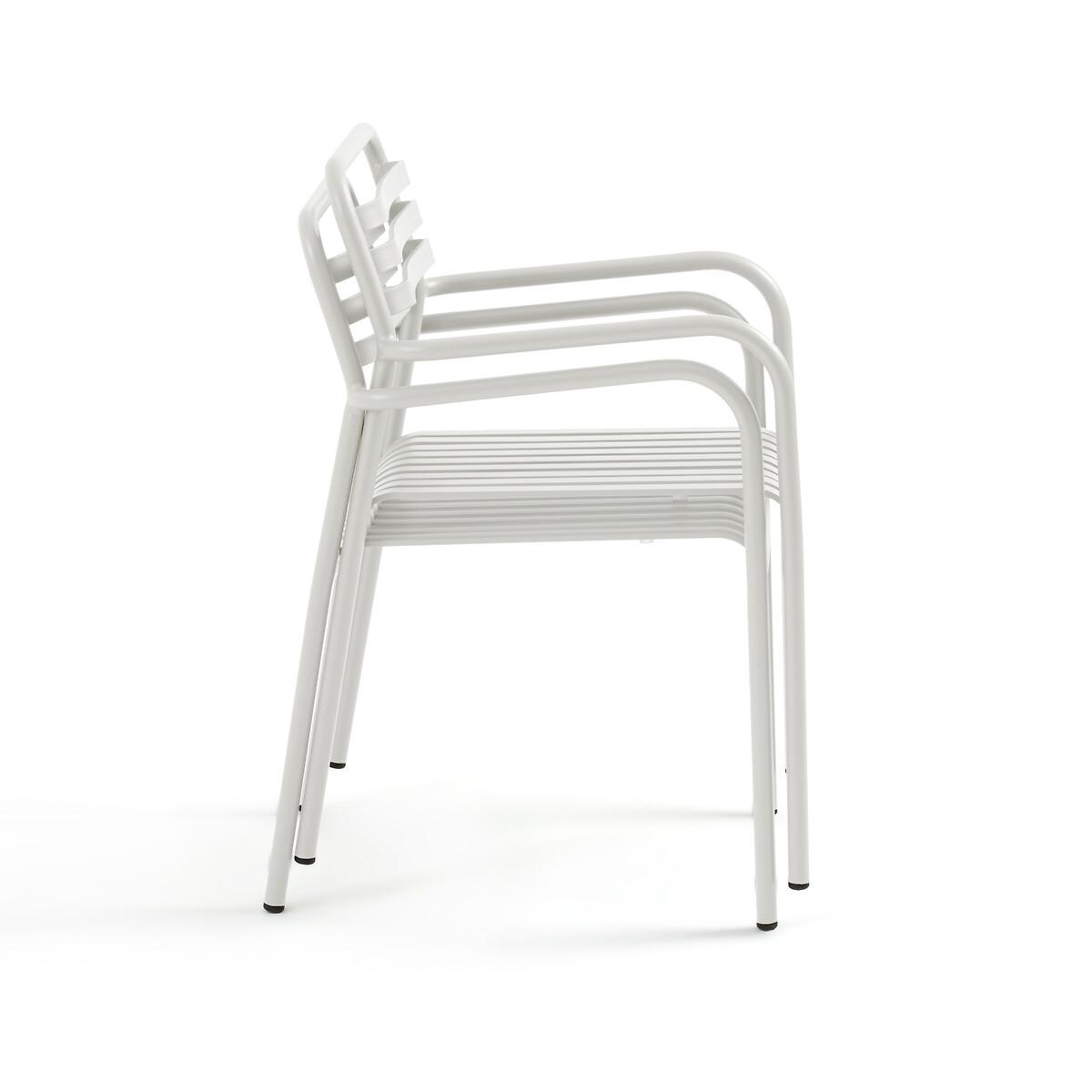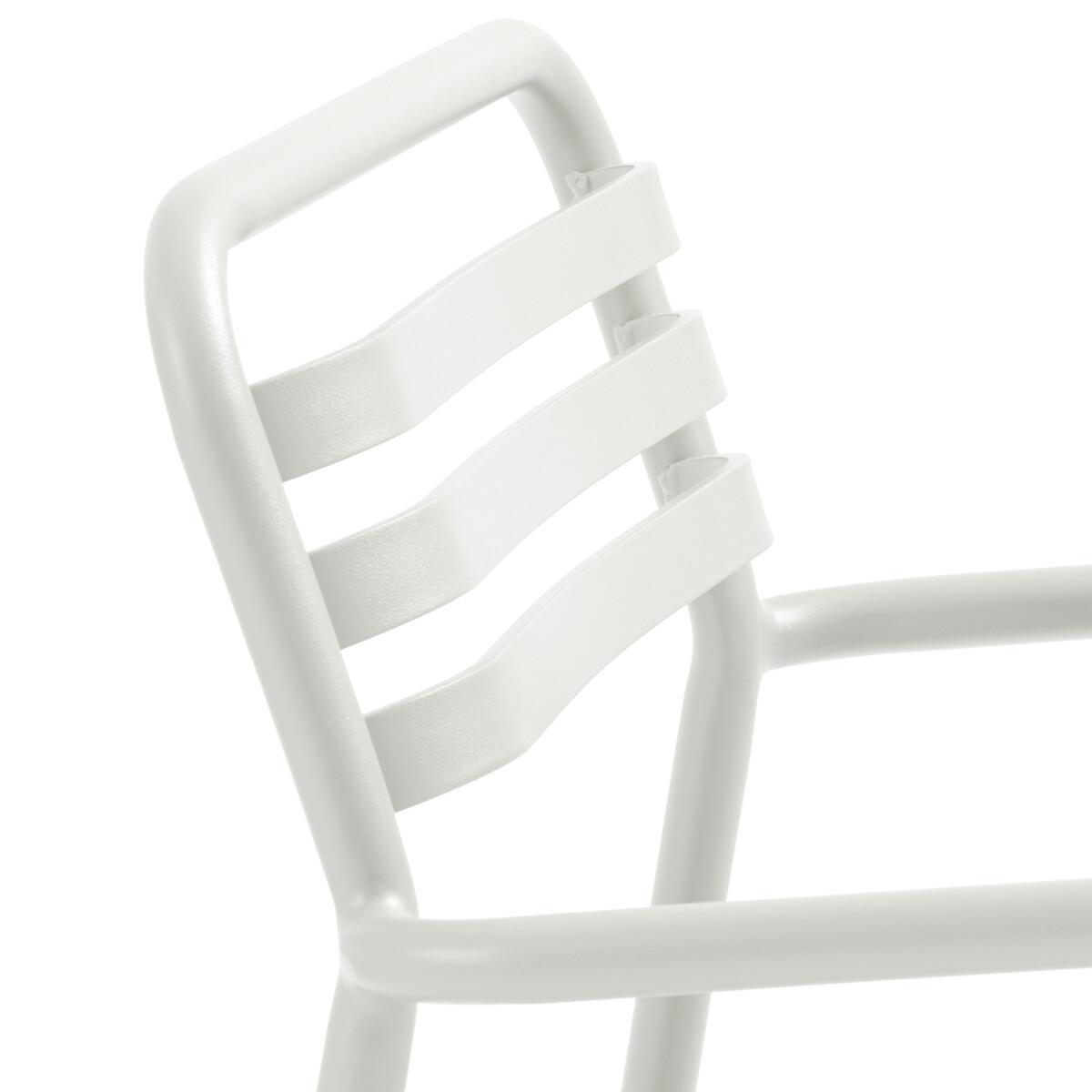 Entirely designed in aluminium, the Manni stackable armchair is very light and can be moved easily around the garden. Its legs designed in the extension of the armrests give it an elegant line and ensure great stability.