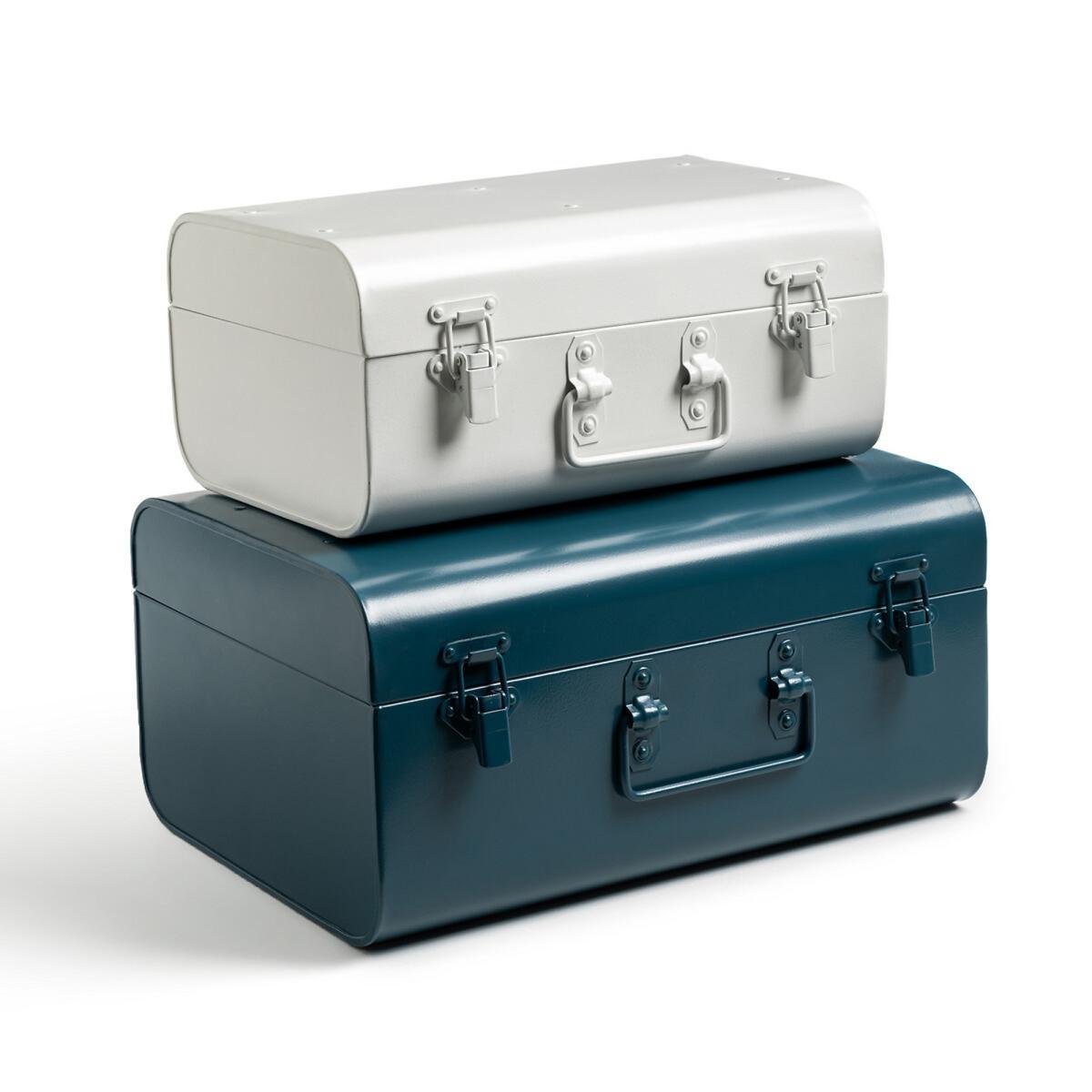 This set of 2 colourful metal storage trunks will bring a playful yet practical touch to your home or office!Product Details. Set of 2 metal trunks covered with epoxy paint. 3 handles on all sides: and one on the front. 2 latches + 1 padlockable fastening in the middle. Discover other items in the Masa collection at laredoute. Dimensions. Large:. Width: 35cm. Height: 17cm. Depth: 25.5cm. Small:. Width: 30cm. Height: 14cm. Depth: 20cm. Dimensions and weight of parcel1 parcel. 41 x 31 x 23cm. 3.45 kg.