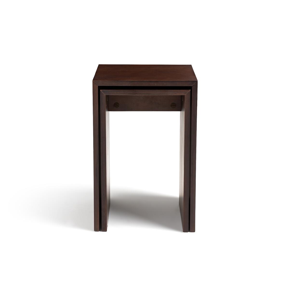 The 2 Mendo nesting end tables. A minimalist style for all sorts of different rooms, these end tables complement both the decor and the interior design. A signature design by La Redoute Interiors. Product Details • Walnut veneered MDF, walnut stained finish • FSC® certified wood • Felt pads on feet • Pack of 2Dimensions. Large: • Width: 36cm • Height: 54cm • Depth: 36cm. Small: • Width: 30cm • Height: 51cm • Depth: 30cm. Total weight: 12kgDelivery:. This product required assembly. Available for home delivery. • WOOD FROM SUSTAINABLY MANAGED FORESTS. FSC® certified wood comes from forests that are environmentally, socially and economically well managed. Parcel dimensions and weight1 parcel • L66 x H16 x D44cm, 13.6kg
