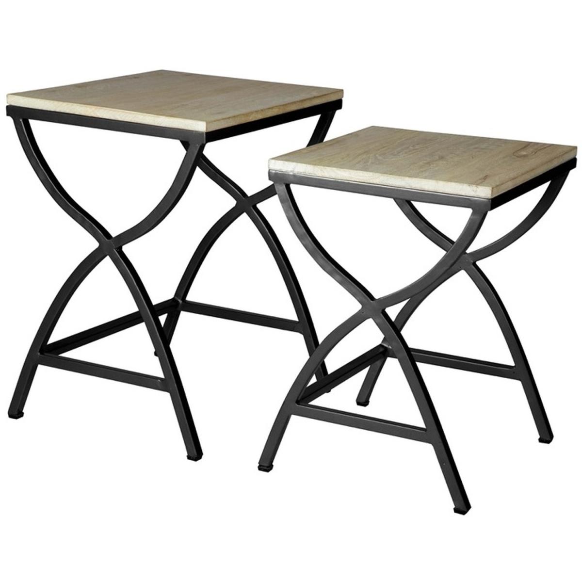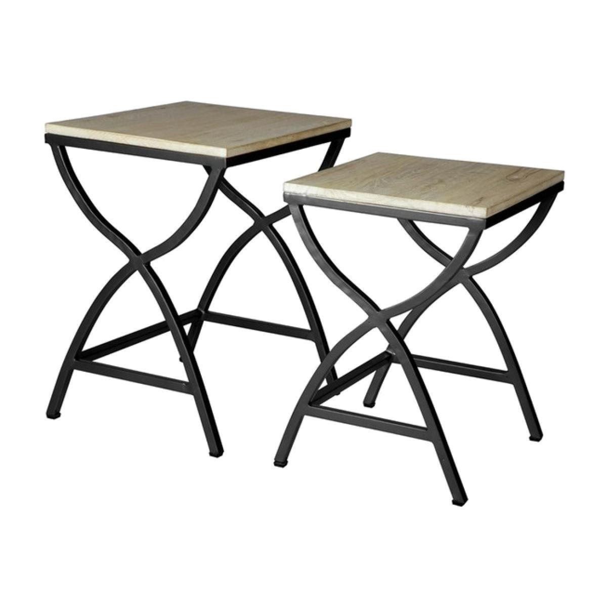 Set of 2 Metal and Wood Nested Tables, A set of 2 tables that will be a lovely addition to any modern surroundings. Each piece is unique due to its handmade character and items can vary slightly from the images shown. A beautiful combination between solid wood and reclaimed metal to create a set of nested tables of 2 different sizes which can be stored together when not in use. Comes fully assembled. Handmade by craftsmen in India as a versatile piece of furniture that can be used as serving tables, coffee tables, side tables, occasional tables etc. This set of 2 tables will be a lovely addition to your industrial style surroundings.