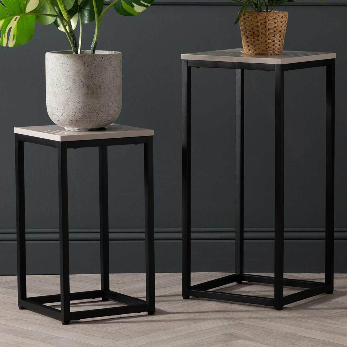 Set of 2 Metal Black Plant Stand - Black/Grey