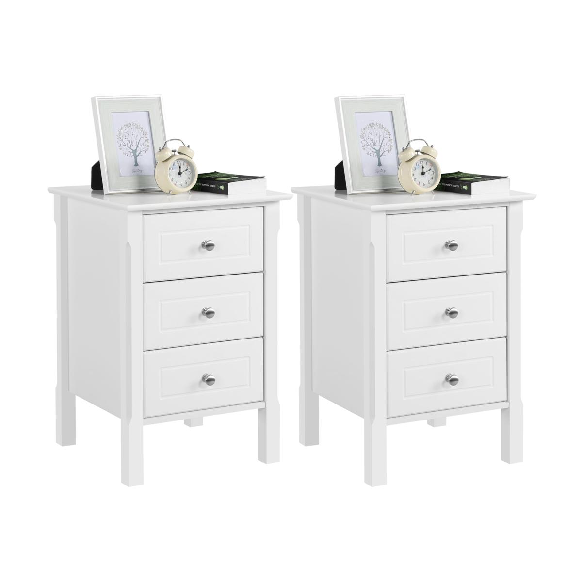 Set of 2 Modern 3 Drawer Bedside Table - White