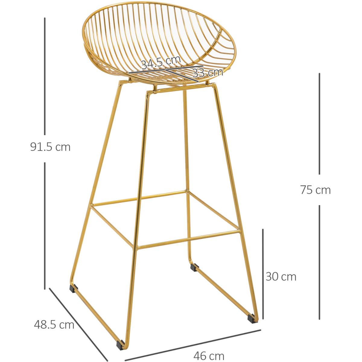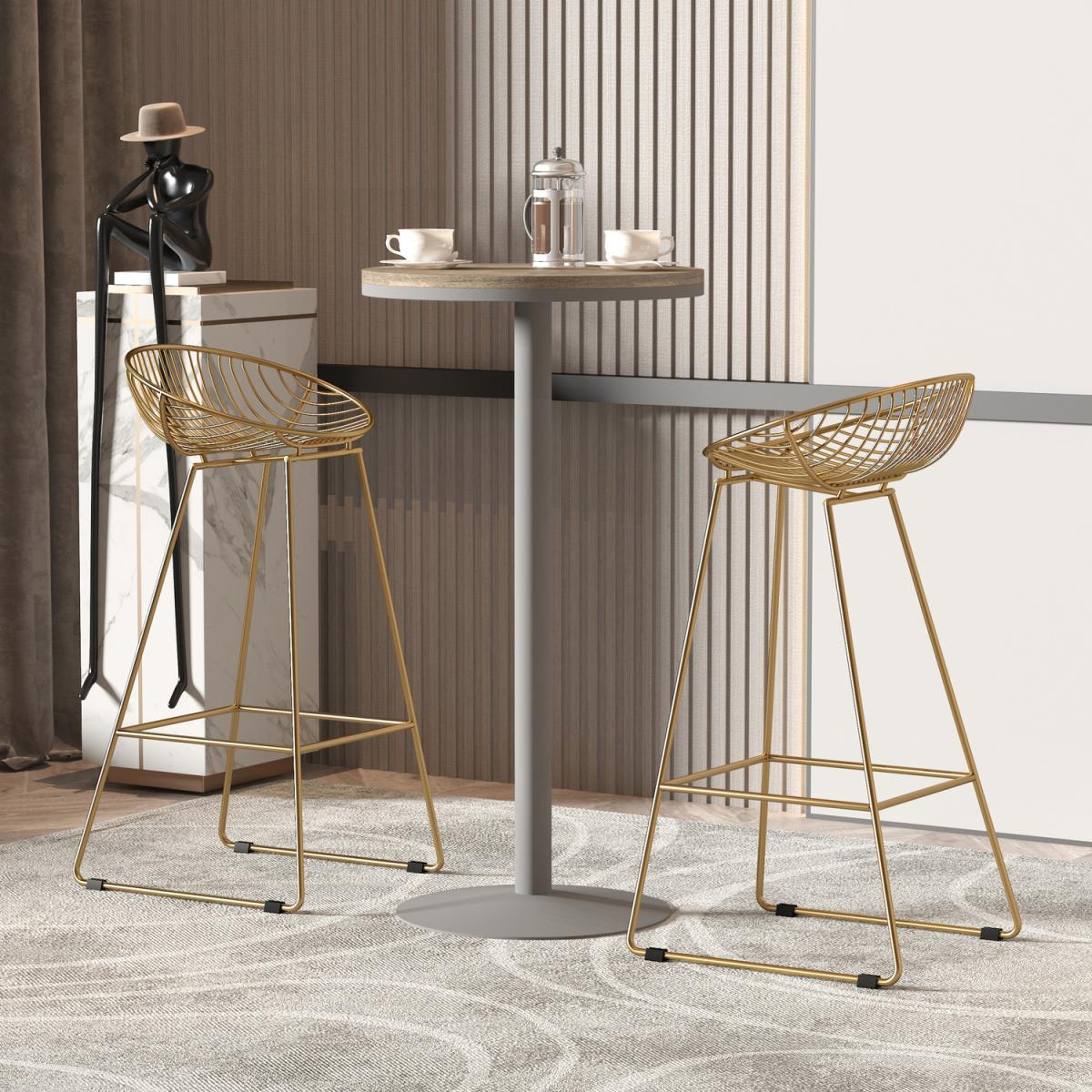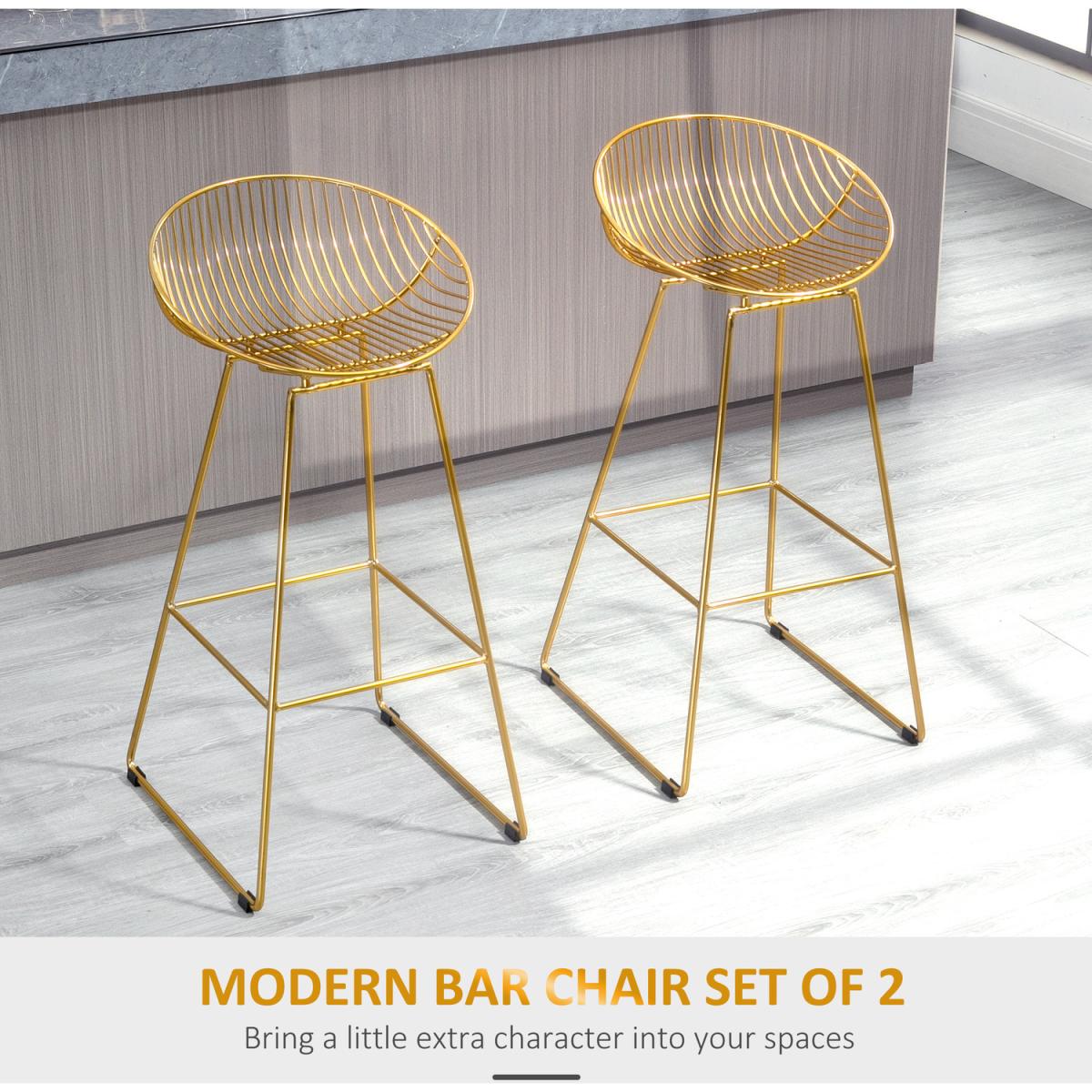 Set of 2 Modern Barstools Bar Chairs with Footrest Steel Frame - Gold