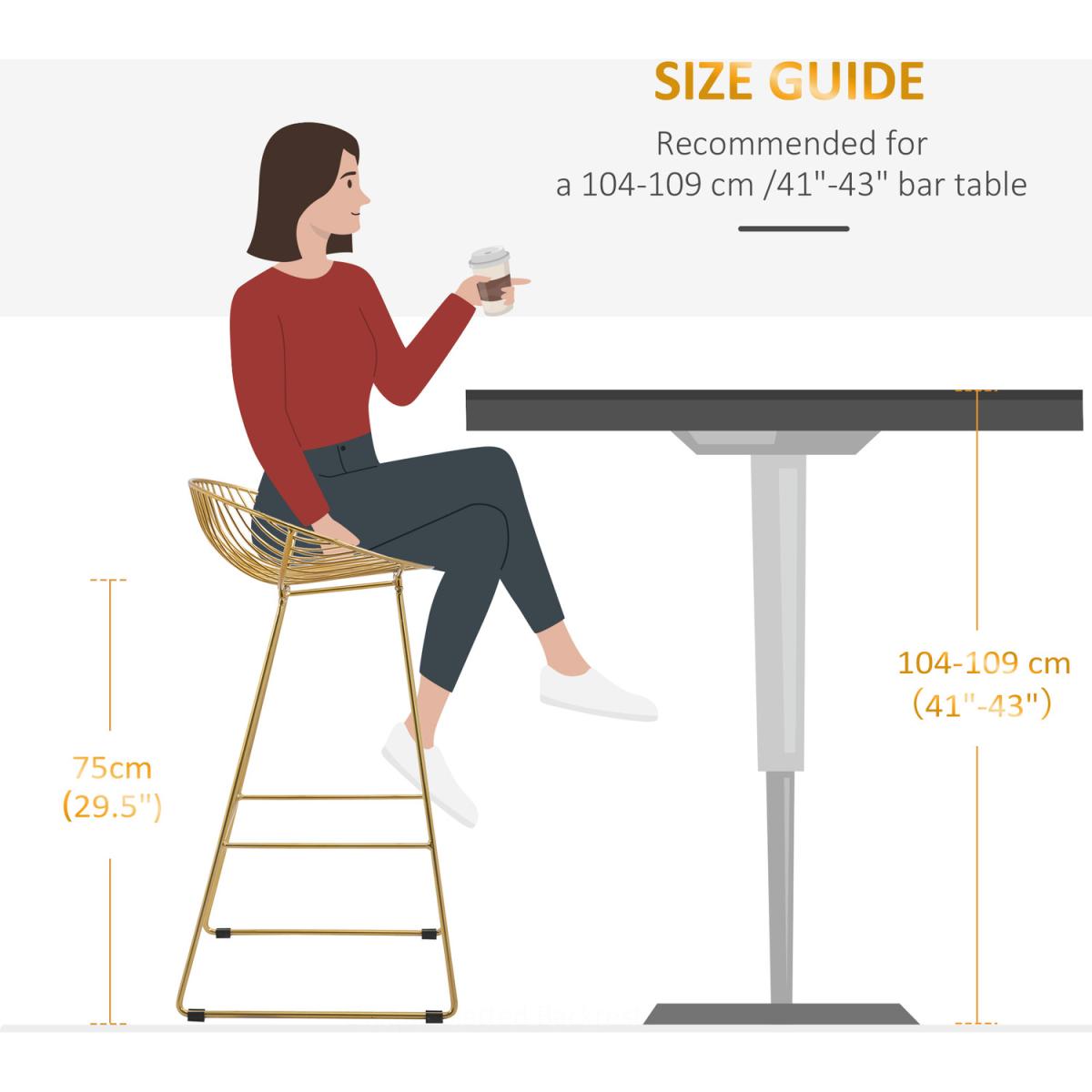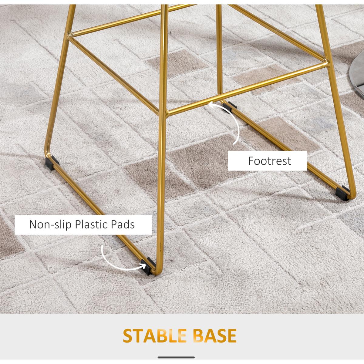 Our modern-style bar chairs from HOMCOM can be a good option to make your home stylish and attractive. The luxurious design makes a distinct statement in any setting. The footrest and backrest help you to relax body posture. A sturdy metal base provides great support, non-skid plastic pads at the bottom for safe and stable standing. Enjoy your time and create a comfortable place for your guests with these beautiful bar stools.