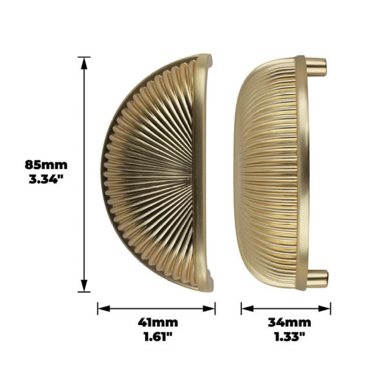 I really like these handles for their sleek, modern look with a subtle touch of luxury, thanks to the ribbed texture and soft half-circle shape. They work exceptionally well in contemporary and minimalist interiors, adding a bit of interest without overpowering the overall aesthetic. For styling, I recommend pairing them with neutral-toned cabinetry to highlight their metallic finish or using them as a statement piece on darker surfaces. Practical tips include placing them uniformly at the same height for a streamlined appearance and considering their size in relation to cabinet doors-larger handles make a bold statement, while smaller ones keep things understated. They’re versatile enough to suit kitchens, bathrooms, or even vintage-inspired pieces when combined with other sleek accents.
