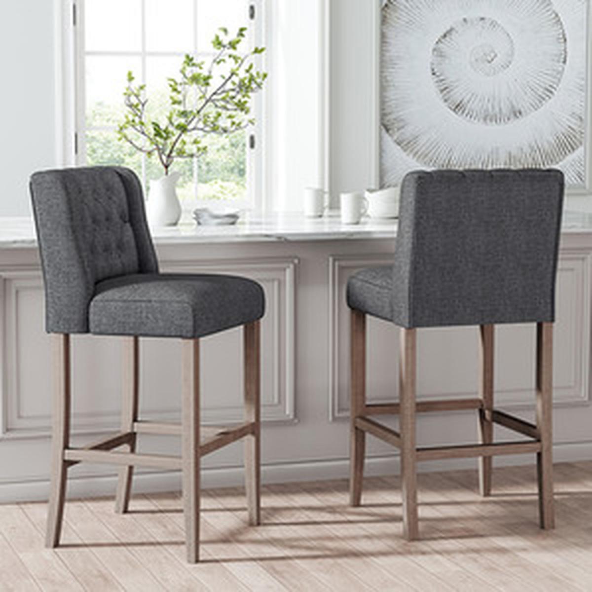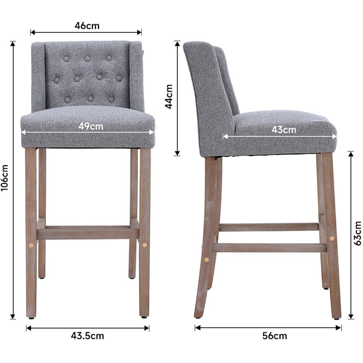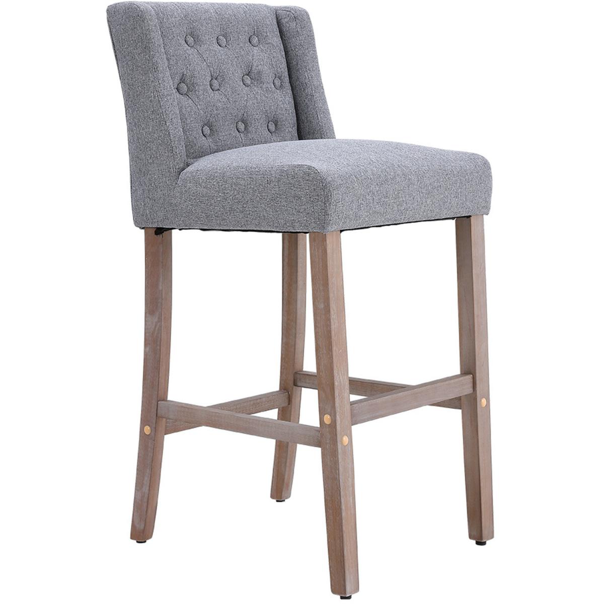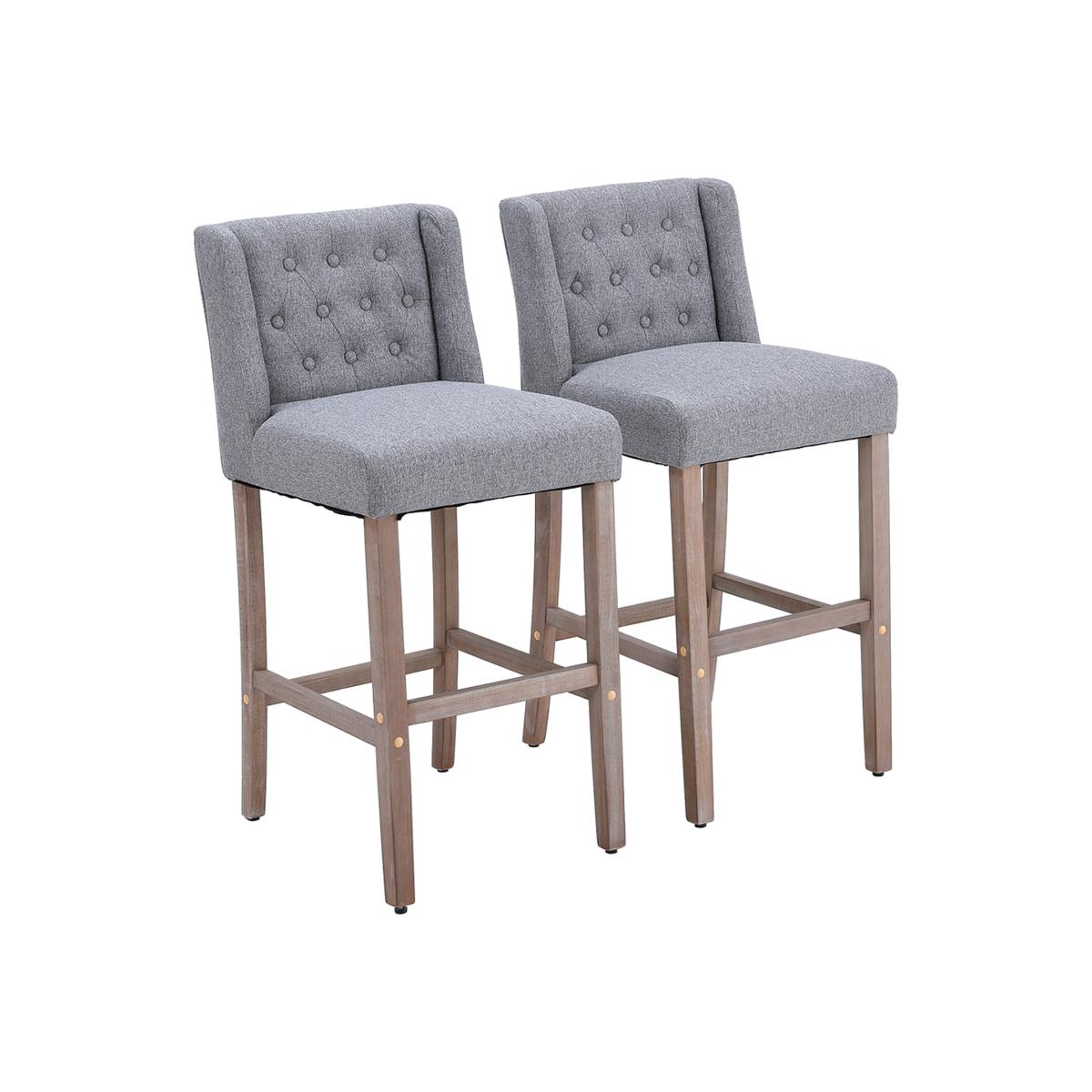 Elevate your counter space with our exquisite Linen Bar Stools , exclusively brought to you by Livingandhome. These bar stools are designed to not only provide comfortable seating but also add a touch of sophistication to your home. Crafted with a focus on both style and comfort, these bar stools feature soft linen fabric upholstery and dense sponge filling. The stool's low back design with tufted accents not only offers lumbar support but also adds a touch of luxury to your seating experience and neutral palette of the bar stools seamlessly blends with any interior, making them a versatile addition to both farmhouse and contemporary homes. Whether you're enjoying a meal, working, or simply catching up with friends, these bar stools provide a comfortable and stylish seating solution. The armless design of the stools promotes easy movement and encourages a free-flowing environment. Additionally, the wooden legs are equipped with a footrest, enhancing the overall comfort and relaxation for extended seating periods.