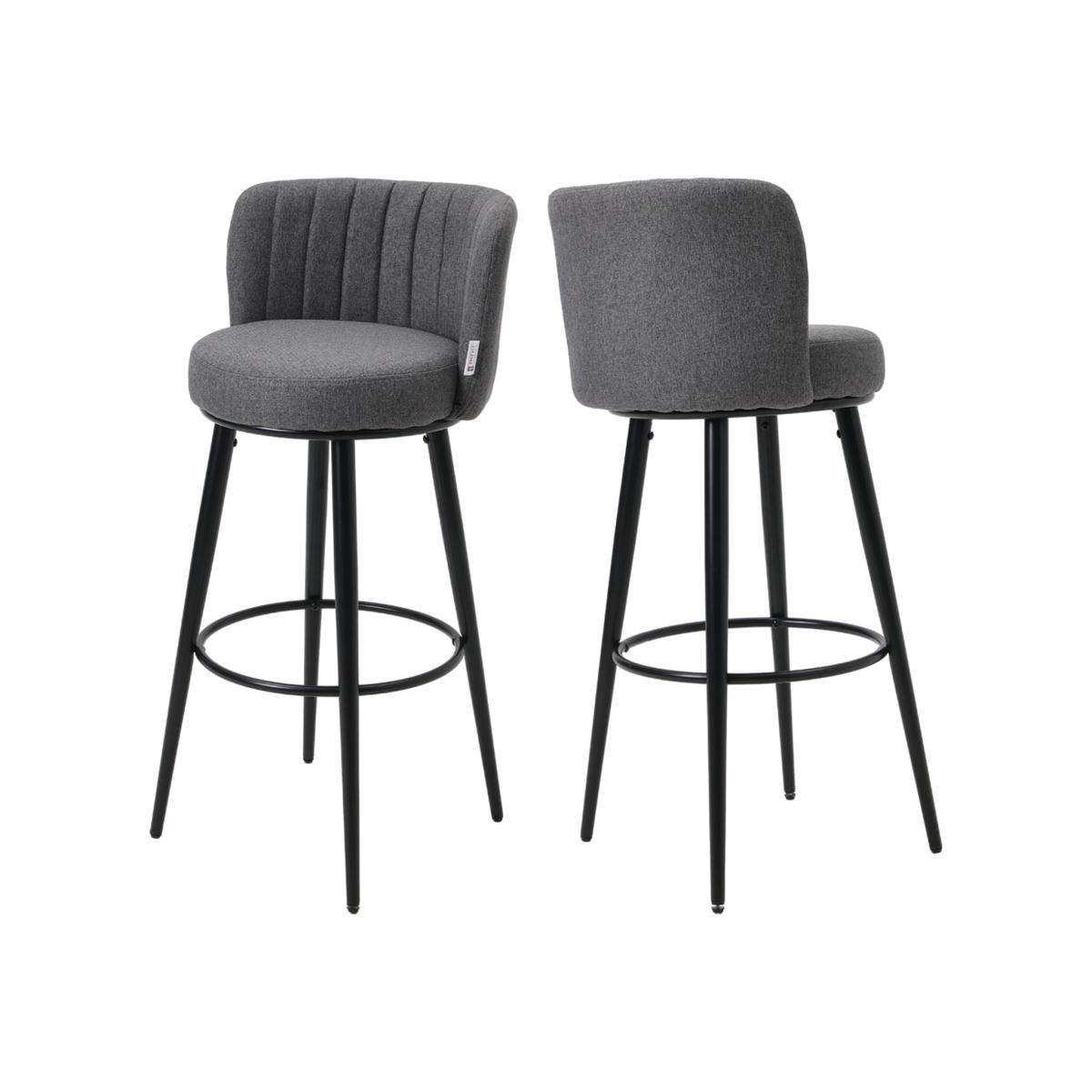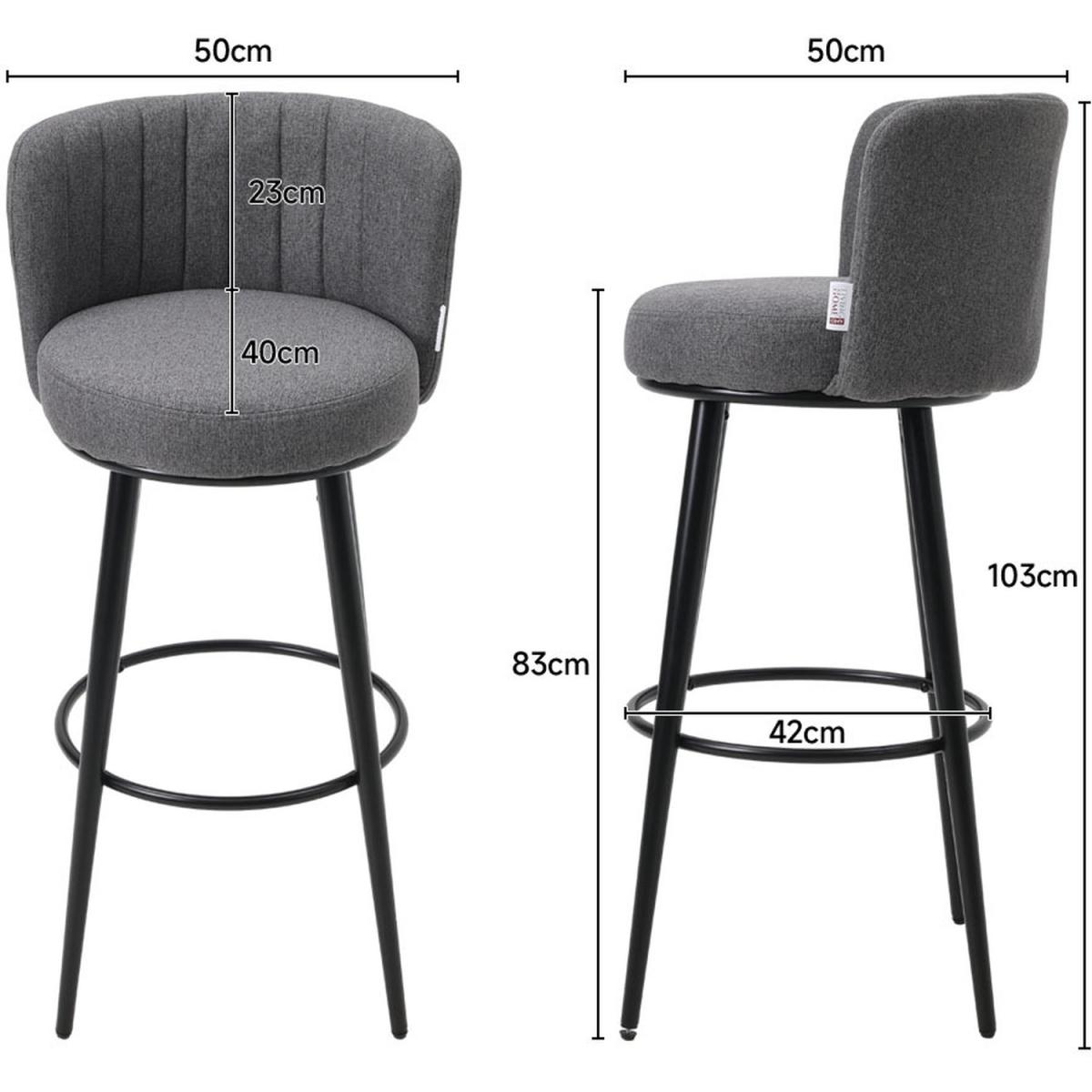 Upgrade your bar area with our Set of 2 Modern Linen Upholstered Bar Stools. Crafted with spalyed metal legs for enhanced stability and a wobble-free experience. The adjustable foot glides offer customizable height, catering to your comfort. Upholstered in premium linen fabric with chic vertical stripes on the backrest, these stools seamlessly blend modern aesthetics with classic charm. Whether for home or commercial spaces, these versatile bar stools are a stylish addition, promising durability and a touch of sophistication. Elevate your dining experience with this contemporary and comfortable seating solution.