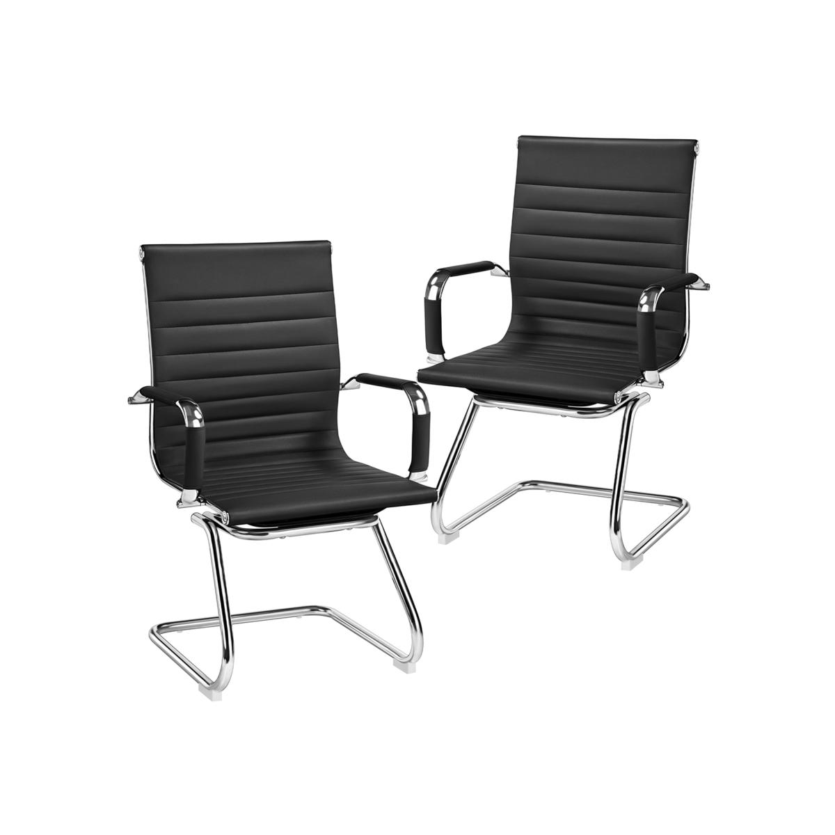 If you are seeking office reception chairs with modern aesthetics and practical function, our mid-back faux leather office chair set is an exceptional choice. The combination of deluxe faux leather upholstery, stylish channel tufting, and chrome-accented frame will bring a sleek yet elegant tone to your office or home. The foam-padded seat and curved backrest provide excellent body support while relieving muscle stress from sitting. A sturdy sledge base with installed glides offers a stable and comfortable sitting experience. You will also appreciate the removable armrest sleeves and back handle for added convenience. Whether used in the reception area of your workplace, restaurant, hair salon, school administrative office, or your home office or study, this 2-piece office guest chair set will be an aesthetically pleasing and practical addition.