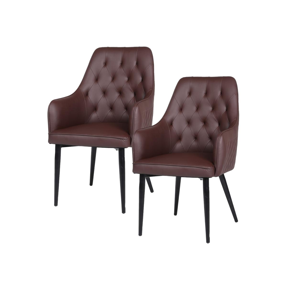 Set Of 2 Modern PVC Leather Dining Chairs, Padded Seat Metal Legs - Reddish brown