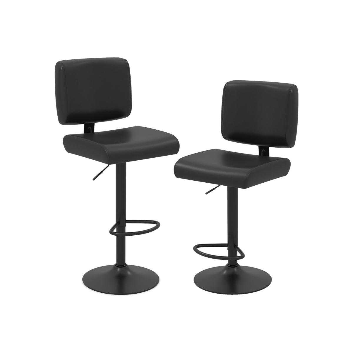 Elevate your seating experience with this set of 2 modern bar stools featuring swiveling and height adjustable seats for ultimate flexibility. Designed with padded cushions covered in PU leather, these stools offer lasting comfort and easy cleaning. The ergonomic curved backrest and footrest provide excellent support, while the sturdy gas strut and non-slip base ensure stability and strength up to 150 kg. Perfectly suited for kitchens, dining rooms, or home bars, these versatile and adjustable bar stools with thoughtful details blend style and function to enhance any space with ease.