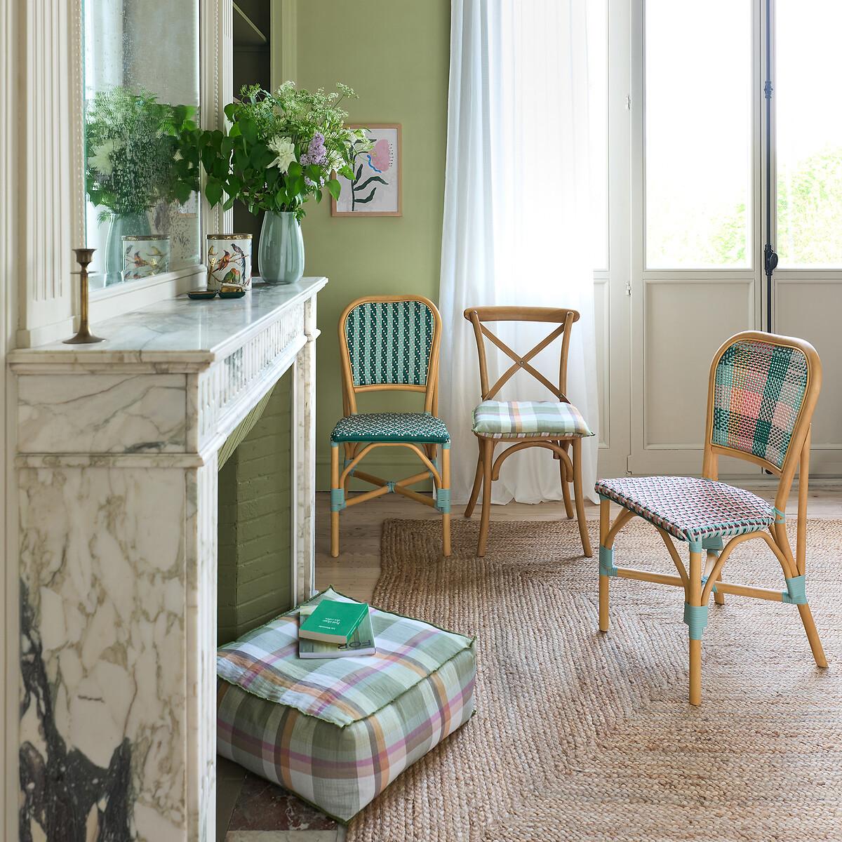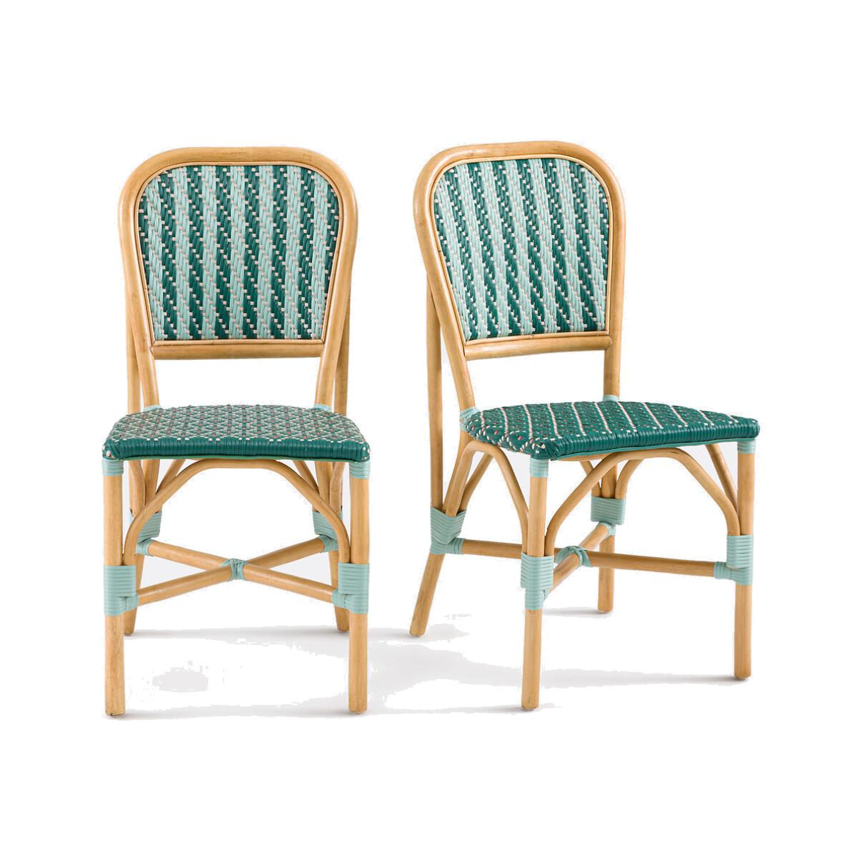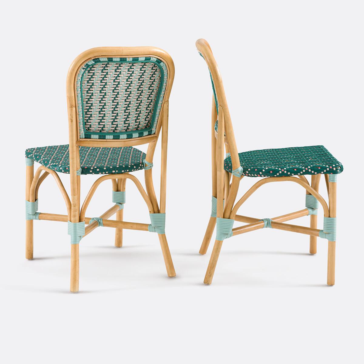 Introducing the Musette chairs, inspired by bistro style. Showcased here in a rattan and multicolour braided version, perfect for bringing a chic country spirit into the home. Designed by La Redoute Intérieurs. Product Details • Rattan cane legs and structure with nitrocellulose varnish finish • Seat and back in poly rattan • Mounted with crossover webbing • Polypropylene glides • Set of 2 chairs • Artisanal craftsmanship. Dimensions • Width: 47cm • Height: 91cm • Depth: 58cm • Seat: L45 x H47 x D44cm • Weight: 3.6kg • Sold pre-assembled. Dimensions and weight of parcel1 parcel • L71 x H96 x D49cm. 11kg