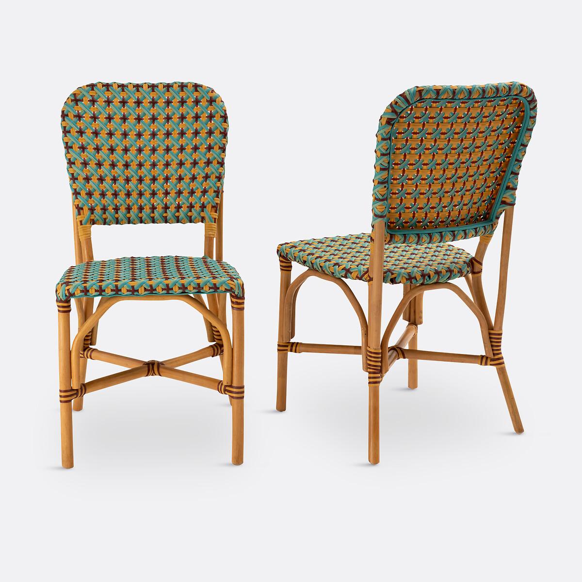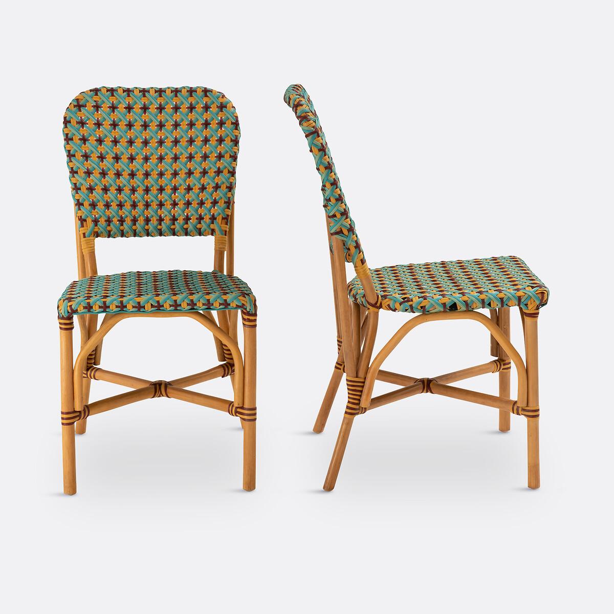 Introducing the Musette chairs, inspired by bistro style. It is presented here in its rattan and colourful braided version, perfect for bringing a chic country spirit to the home. Designed by La Redoute Interiors. Product Details • Rattan cane legs and structure with nitrocellulose varnish finish • Assise et dossier en tressage de polyuréthane • Mounted with crossover webbing • Patins polyuréthane • Artisanal craftsmanship. Dimensions • Length: 47cm • Height: 91cm • Depth: 58cm • Seat: L46 x H47 x D44cm. Delivery: • Assembly required. Available for home delivery. Note! Please check that all access points are large enough to accommodate your delivery (doors, stairs, lifts). Dimensions and weight of parcel1 parcel • L50 x H95 x D77cm - 10kg