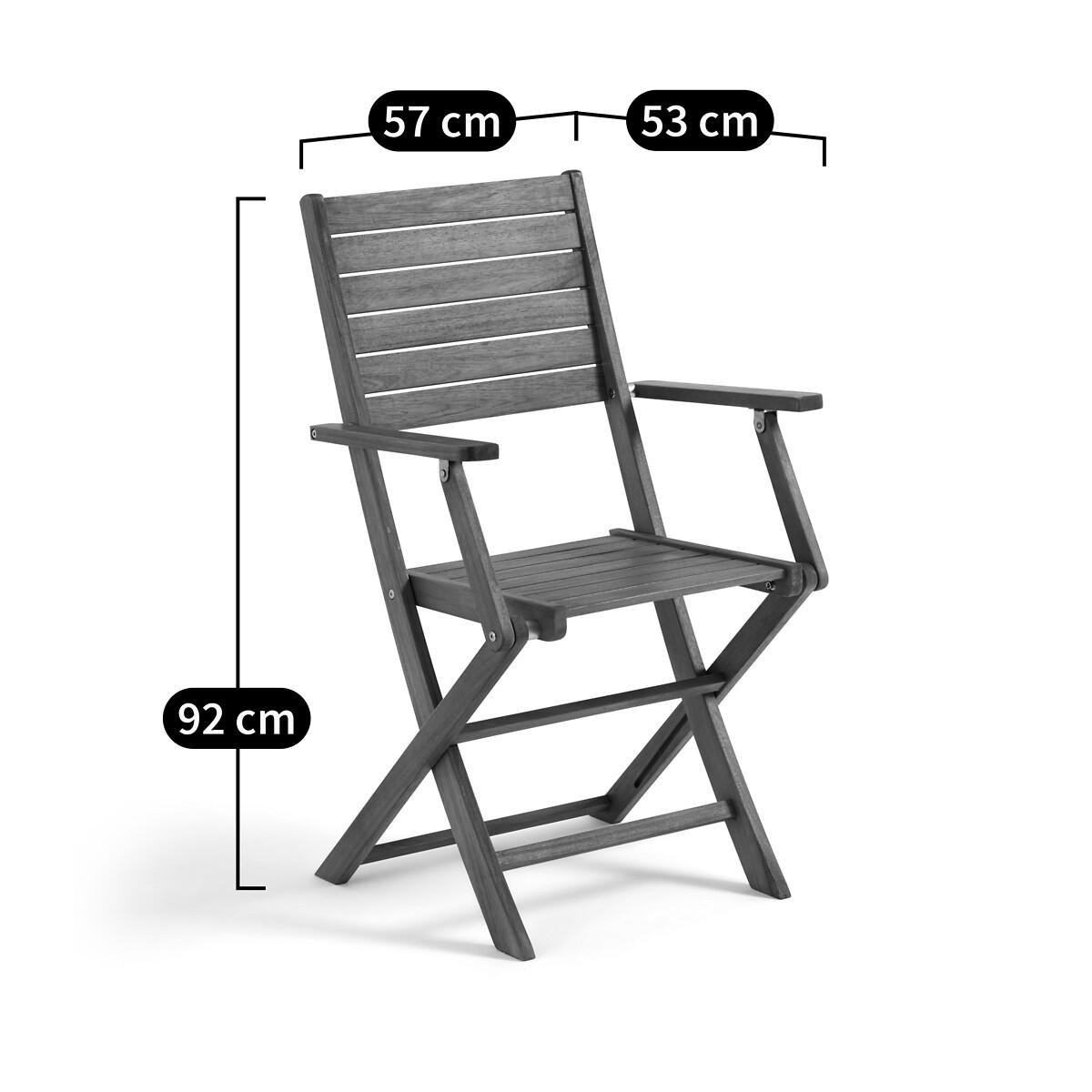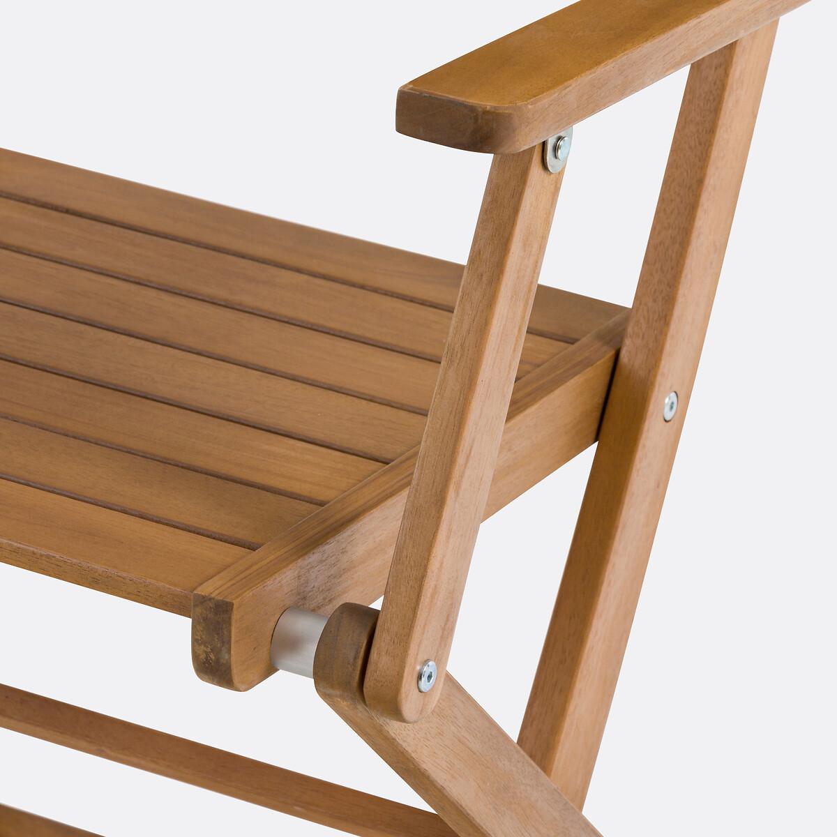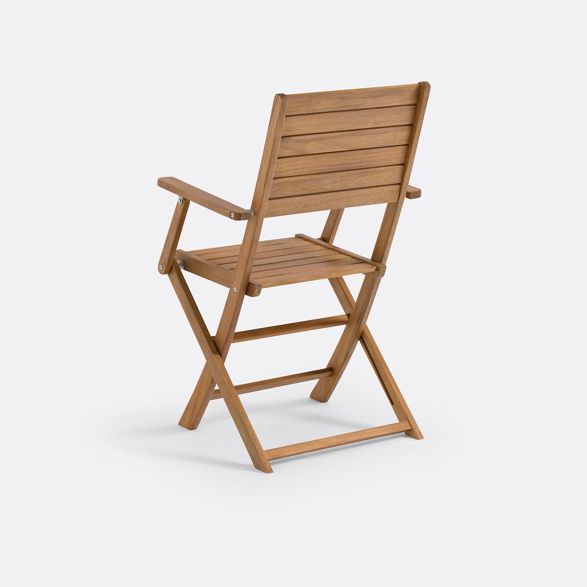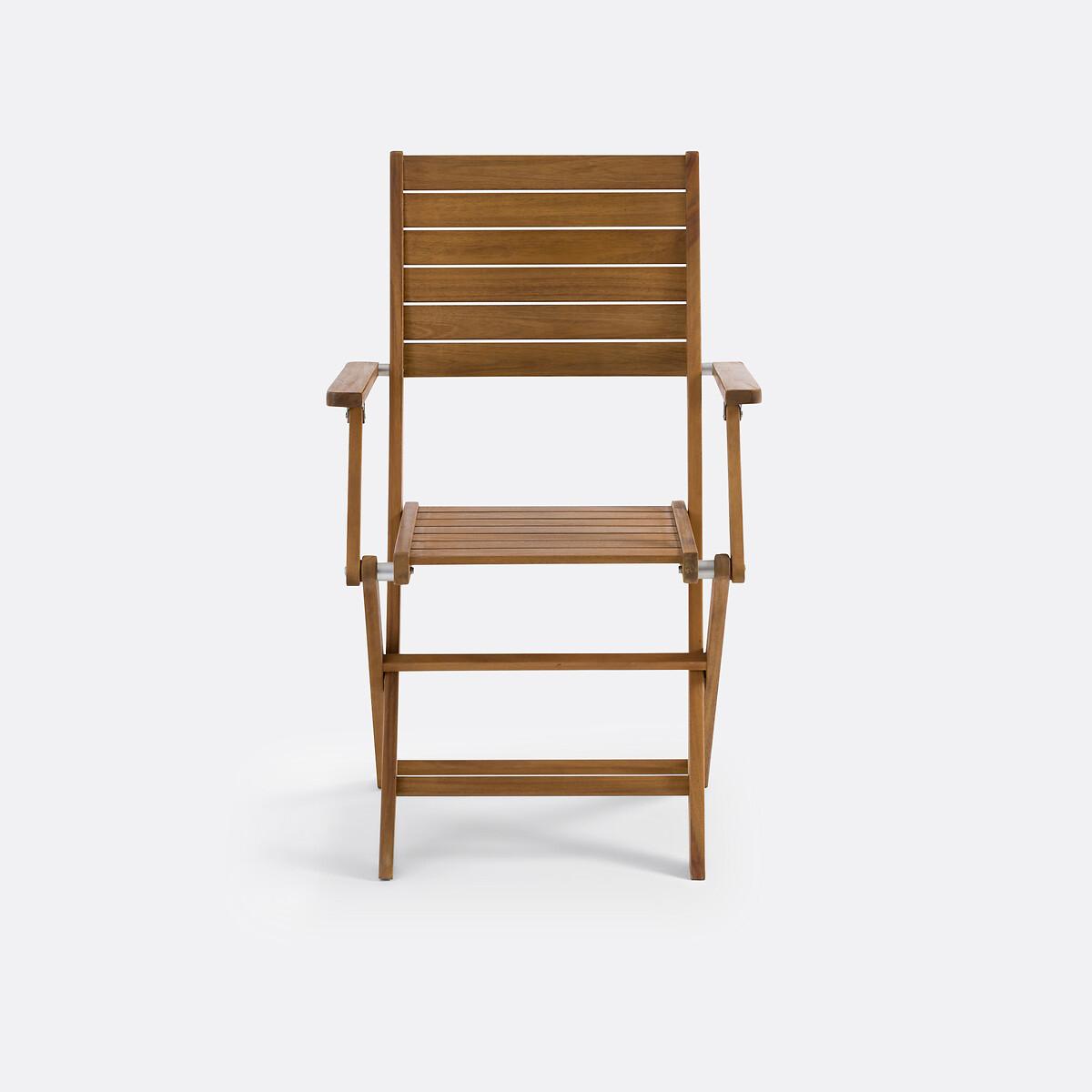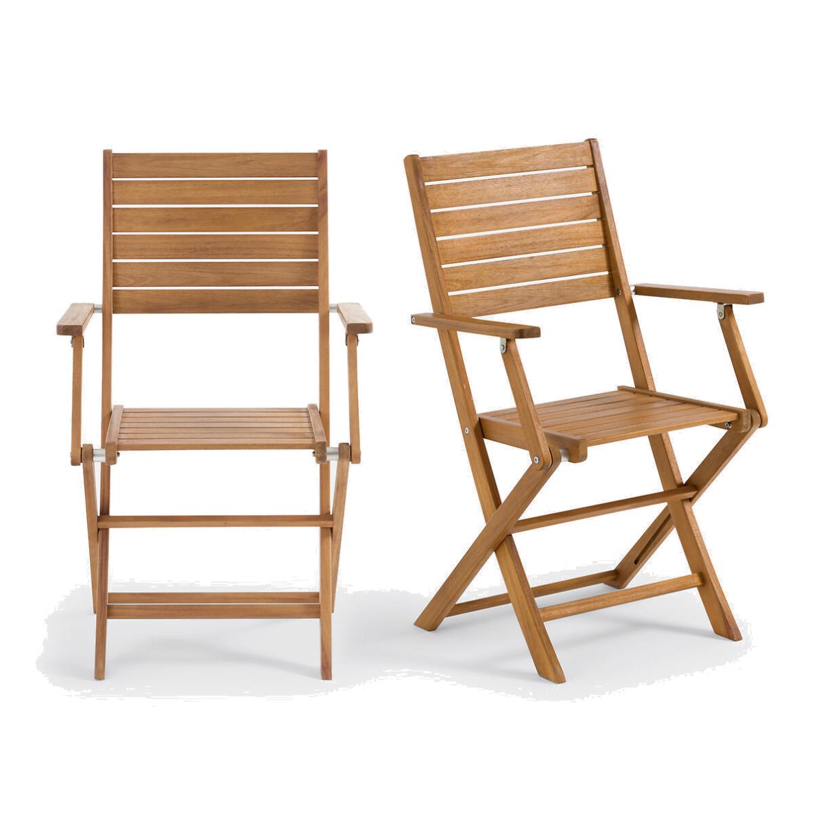 Napli garden armchairs are made from acacia, a perfect material for outdoor use. The ideal furniture to receive your guests on your terrace. Easy to live with, they are foldable and easy to store. Product Details • In acacia, natural colour tinted oiled finish. FSC® certified wood • Seat and back in 5cm slats • 2 armrests • Folding • Pack of 2. Quality Info • Acacia is a wood that offers good mechanical properties (good resistance to insects and fungi) and is resistant to bad weather (alternation of dry and humid periods).Dimensions • Width: 55cm • Height: 92cm • Depth: 53cm • Weight: 4.5kg • Seat height: 46cm • Seat Width: 48cm • Armrest height: 66cmDelivery:. Sold pre-assembled. It will be delivered to your door. Note! Please check that all access points are large enough to accommodate your delivery (doors, stairs, lifts). • WOOD FROM SUSTAINABLY MANAGED FORESTS. FSC® certified wood comes from forests that are environmentally, socially and economically well managed. Dimensions and weight of parcel1 parcel • L110 x H20 x D53cm. 11.5kg