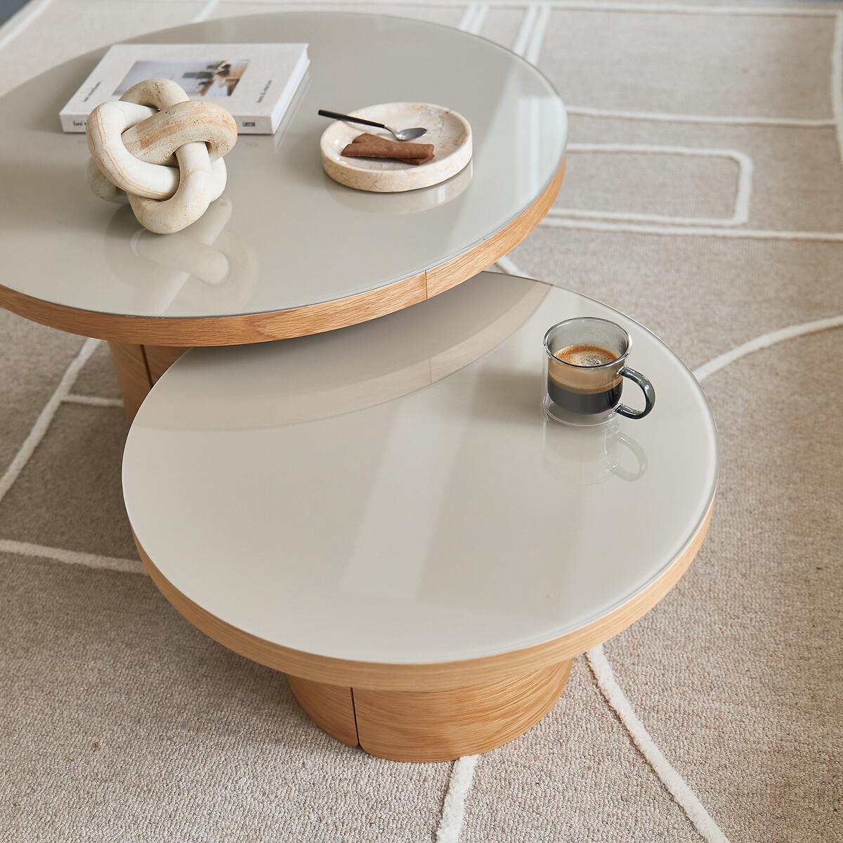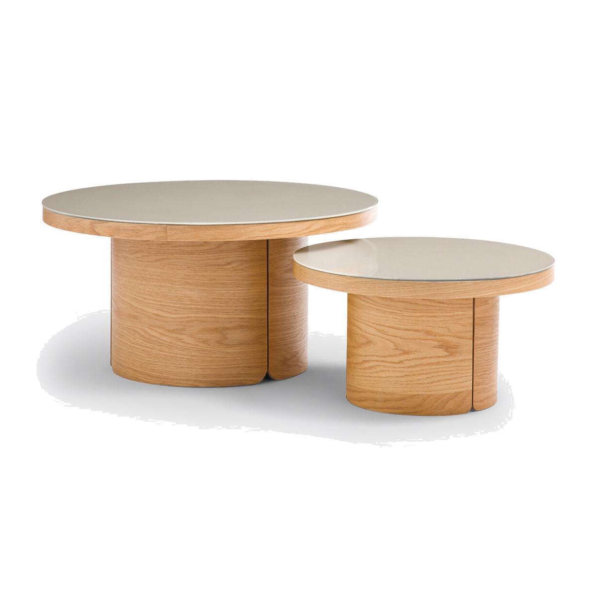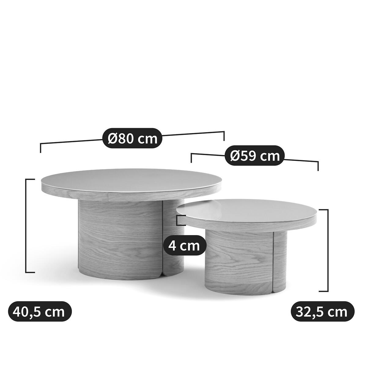 A contemporary style inspired by Scandinavian design: the Natesse coffee tables are distinguished by their minimalist design and round shape. Combine with other items from the range or use alone. Designed by La Redoute Intérieurs. Product Details • Set of 2 semi-nesting tables • Tops in MDF painted with nitrocellulose varnish finish, covered with transparent tempered glass • Base in oak veneered plywood Care Advice. To protect your coffee tables, consider trivets, coasters and placemats. Dimensions Table 1 • Diameter: 80cm • Height: 40.5cm • Table top thickness: 4cm/1.5"Table 2 • Diameter: 59cm • Height: 32.5cm • Table top thickness: 4cm/1.5"Delivery:Assembly required. Available for home delivery. Note! Please check that all access points are large enough to accommodate your delivery (doors, stairs, lifts). • WOOD FROM SUSTAINABLY MANAGED FORESTS. FSC® certified wood comes from forests that are environmentally, socially and economically well managed. Dimensions and weight of parcel2 parcels • L89 x H49 x D89cm. 22kg • L68 x H41 x D68cm. 16kg