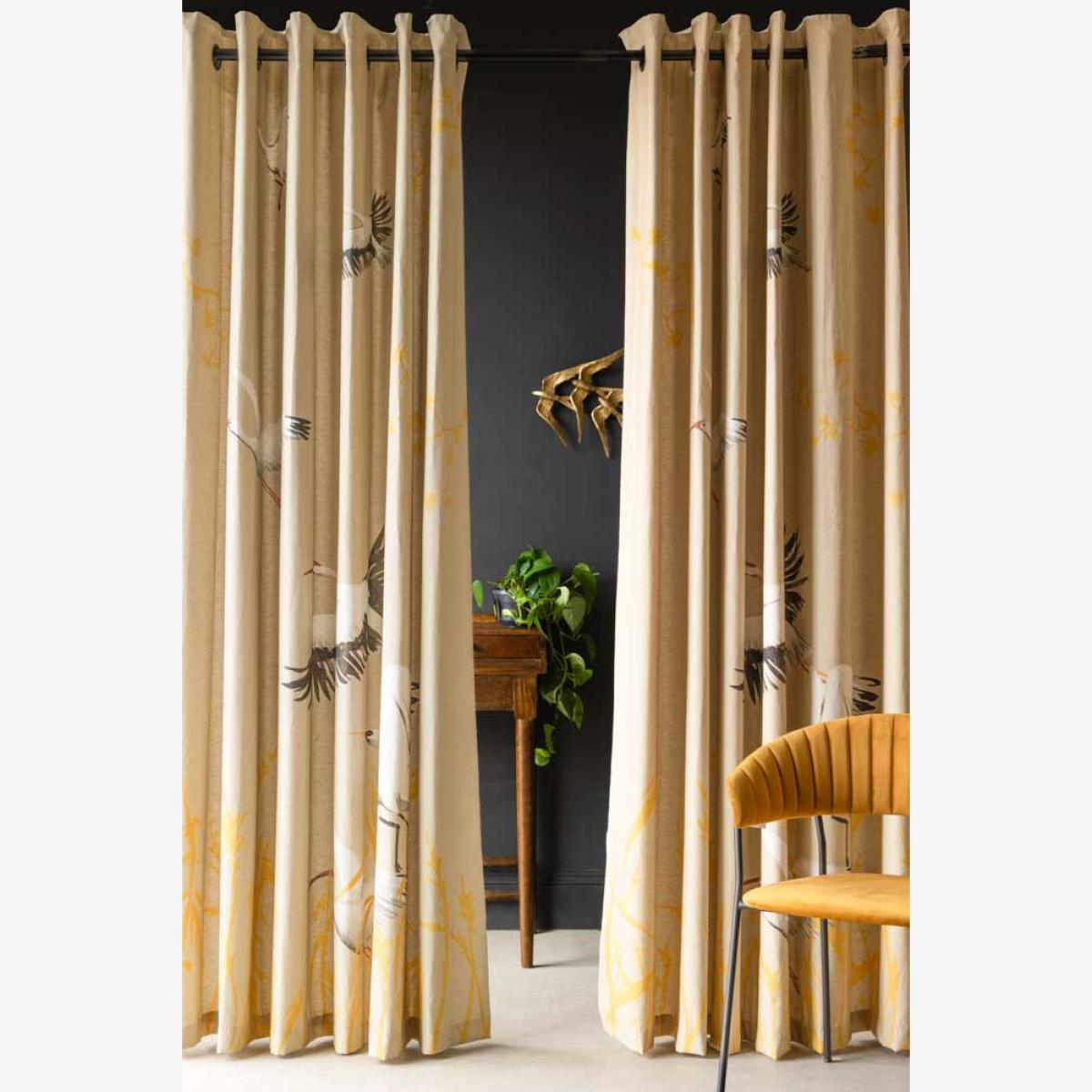 There’s nothing like an elegant pair of curtains to add a finishing touch to a room, and these linen-mix beauties will do the trick nicely. Crafted from a combination of recycled polyester, cotton and linen, these curtains hang beautifully, and have a quality rustic-feel finish that gives a timeless sophistication to your living room, bedroom or workspace. The crane motif makes these super-special, too – cranes have a timeless symbolism that crosses cultures, and represent happiness, peace, longevity, loyalty and hope. What’s more, they’re linked to spiritual awakening and protection. What lovely qualities to bring into your home! The eyelet design makes these easy to hang, and because they’re fully lined, they’re perfect for adding warmth and helping with light reduction. We love that these add a touch of RSG quirkiness and personality to your home, too. But what really sells us is the touch of magic they bring – they’re forever pieces to be enjoyed for years to come. - Natural Crane Curtains with eyelet design (eyelet dimension 4cm) - Material: 40% Recycled polyester, 40% cotton, 20% linen. Lining 100% recycled polyester Available in two sizes: -Wide Each curtain width approx. 168cm Available in the following lengths: 229cm Suggested pole size: 165-250cm - Extra wide Each curtain width approx. 228cm Available in the following lengths: 229cm Suggested pole size: 230-360cm