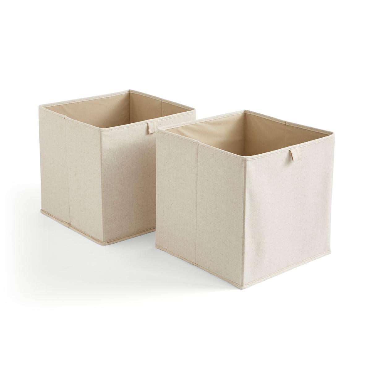 Set of 2 Natural Linen Collapsable Storage Boxes