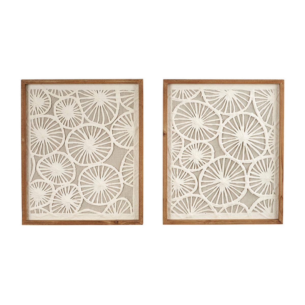 Bring a touch of refined simplicity to your living space with this set of two natural paper wall art pieces. Featuring intricate, handcrafted designs on textured natural paper, each piece is beautifully framed to highlight its organic charm and elegance. The neutral tones and minimalist aesthetic make these artworks versatile additions to any room, effortlessly complementing modern, rustic, or traditional interiors. Perfect for creating a calming focal point in your lounge, bedroom, or hallway, this set adds depth and sophistication to your decor.