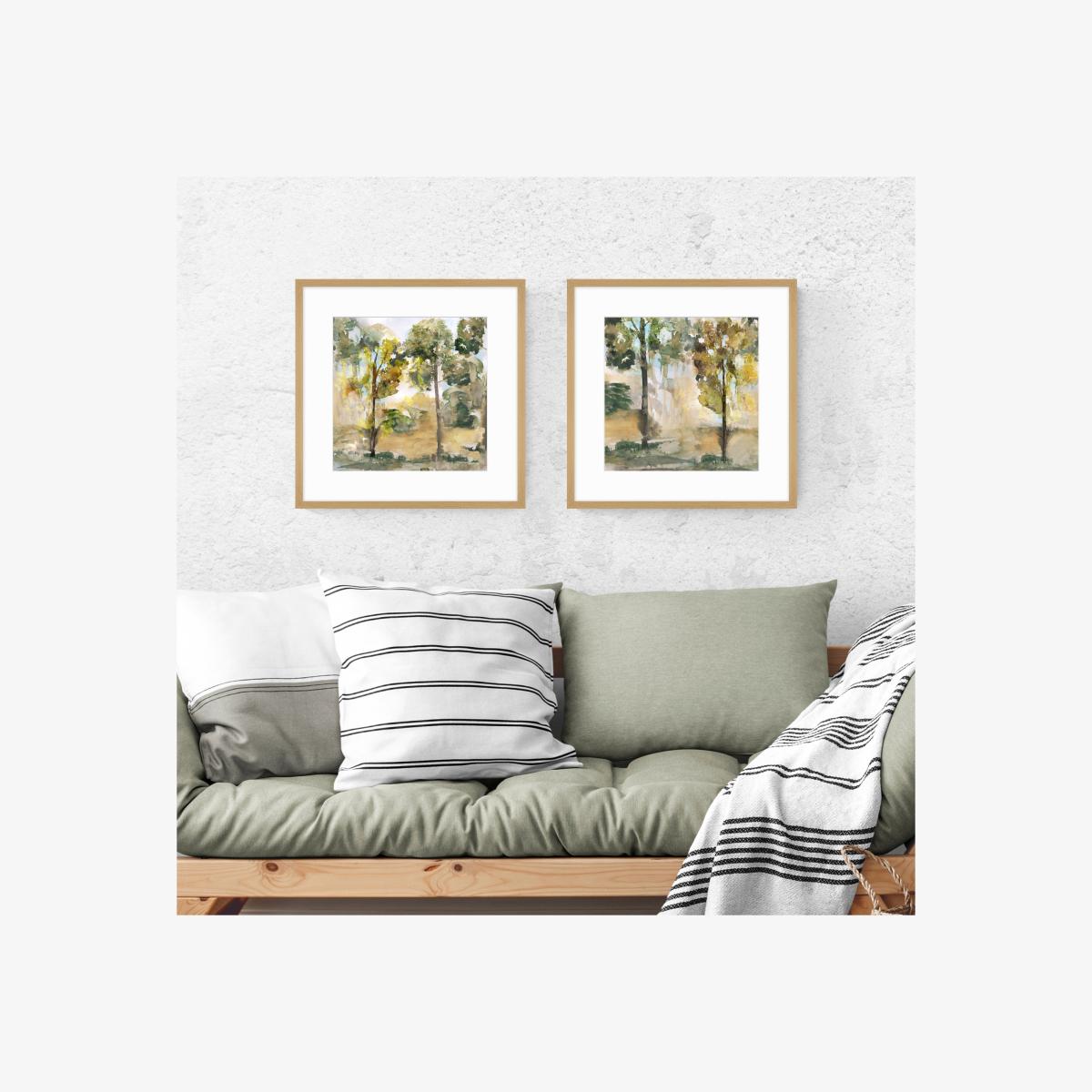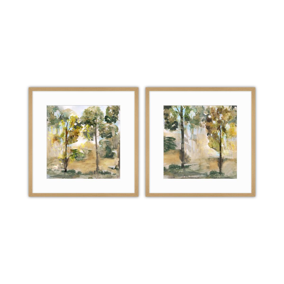 * Soft, autumnal colours * Set of 2 * Framed and ready to display Bring the beauty of the changing seasons into your home with this serene set of framed prints by Susan Jill. Featuring soft, impressionistic trees in muted autumnal tones, each piece captures the gentle transition into autumn. Transparent layering creates a delicate watercolour effect, adding depth and an organic feel to the composition. Mounted within warm wood-coloured frames and finished with glass, they offer a balanced blend of style and nature-inspired charm. Ready to hang, this duo makes a timeless addition to your living space, and are the perfect choice for those who love calming, seasonal artwork.