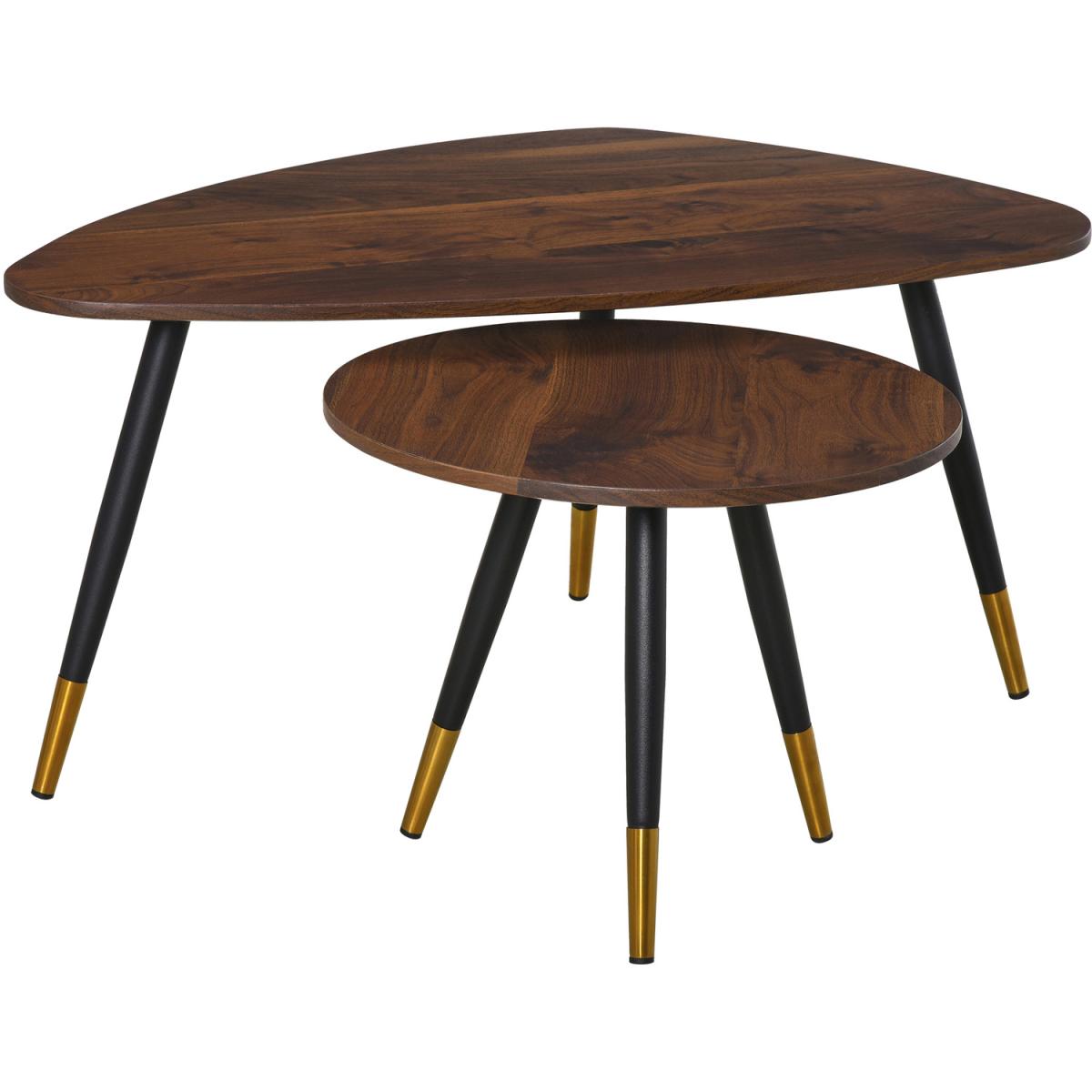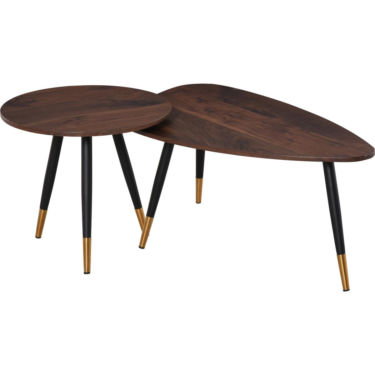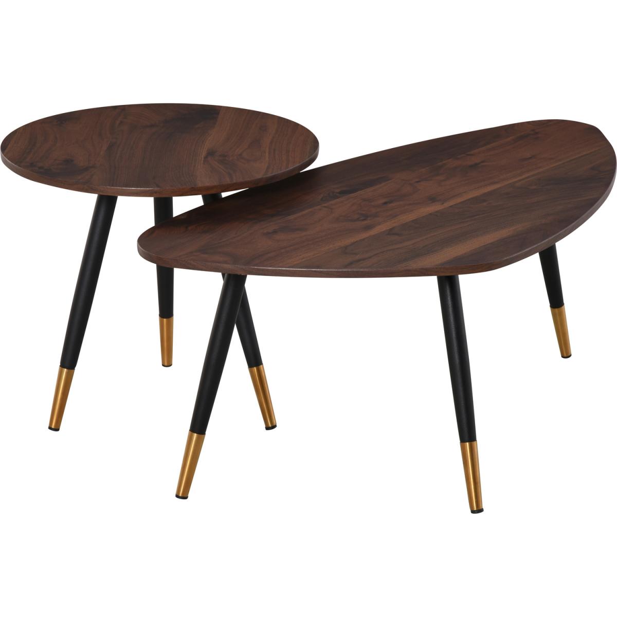 Set of 2 Nesting Coffee Tables - Walnut, Black, Gold
