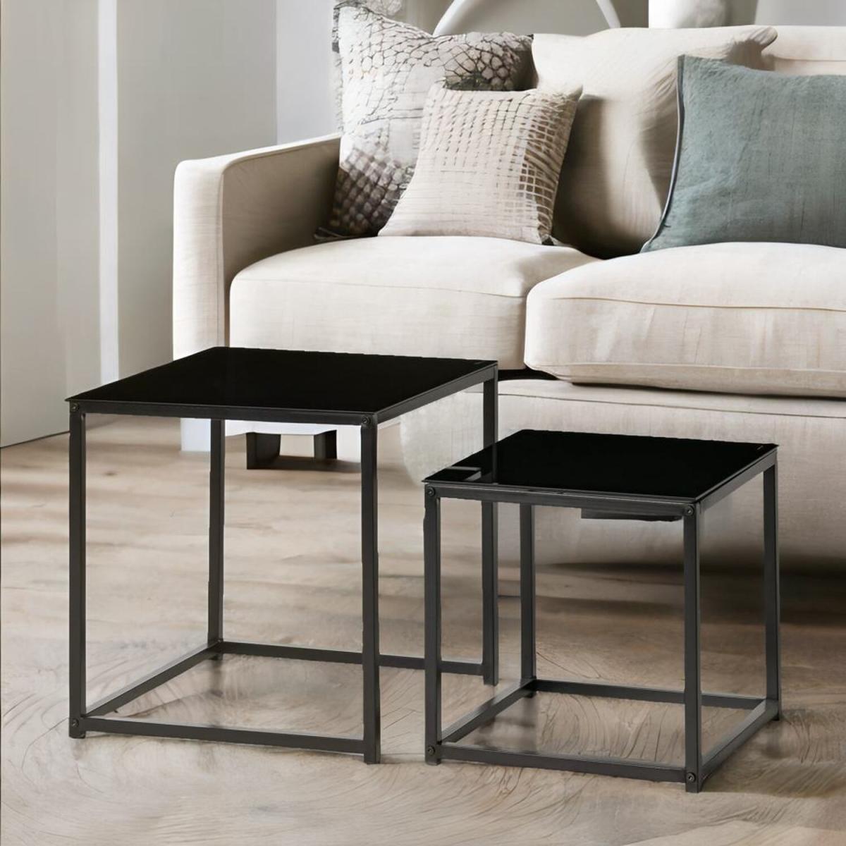 This set includes two nesting tables, offering double the display and storage options. The smaller table conveniently tucks under the larger one for easy storage and space-saving functionality. Designed with sleek tempered glass surfaces, these tables bring a polished, modern aesthetic to any room. The glass is strong, safe, and easy to clean, making it both stylish and practical. Crafted with durable steel frames, these tables provide reliable support and stability, ensuring longevity while complementing contemporary or industrial decor. The large table measures 52. H x 50. L x 50W cm, and the smaller one measures 42. H x 42. L x 42W cm, making them ideal for various spaces, from living rooms to bedrooms. Each table supports up to 30 kg, making them perfect for holding decorative items, books, or everyday essentials. Easy to assemble for quick setup.