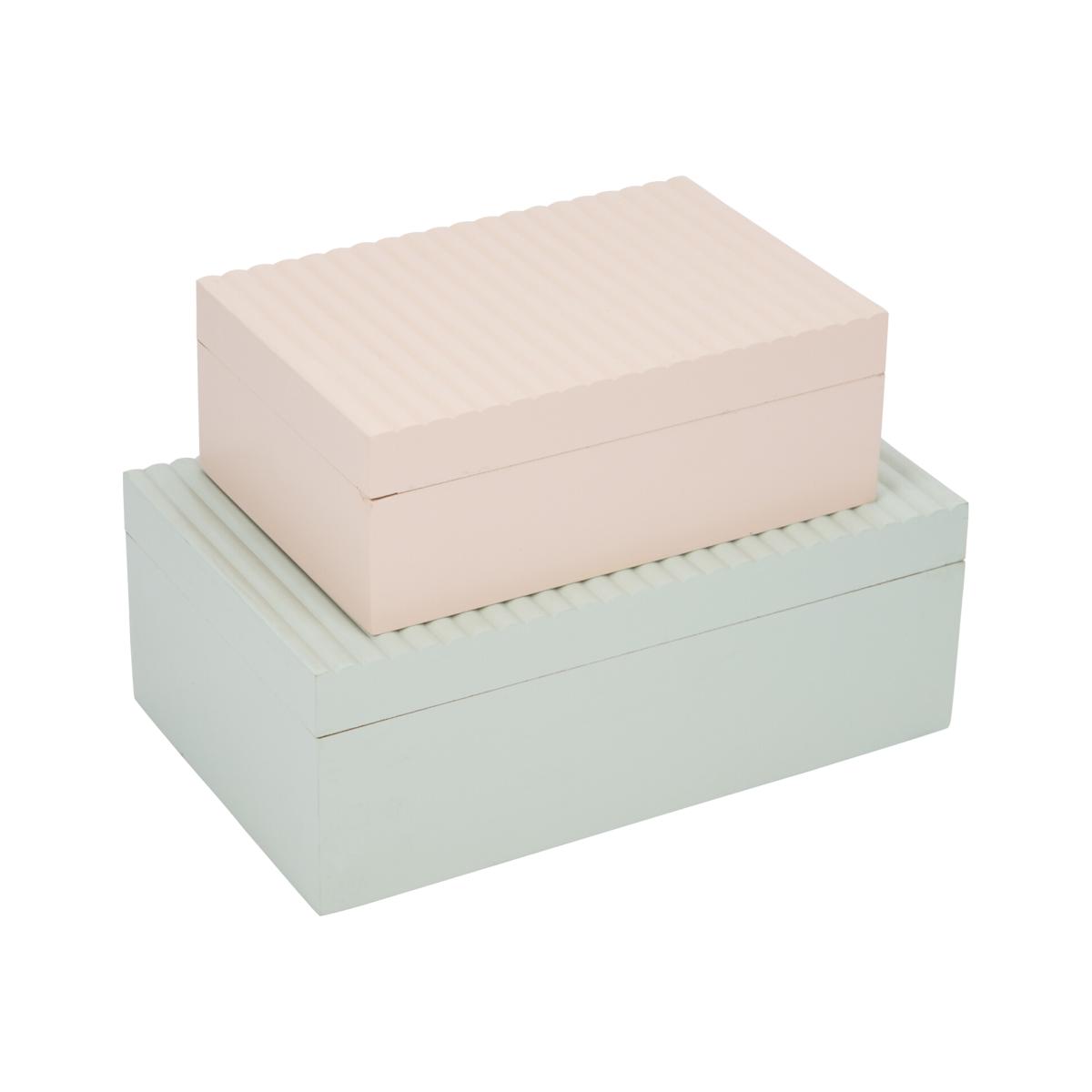 The Set of 2 Nora Wooden Boxes is a great, attractive storage solution for your home. Use these stunning yet simple hinged lid boxes to store all your important household items to keep them on hand but tidied away for no mess. The elegant sage green and pink tones create a vibrant, creative space in your home and will look lovely sitting on accent tables and shelves in most rooms.