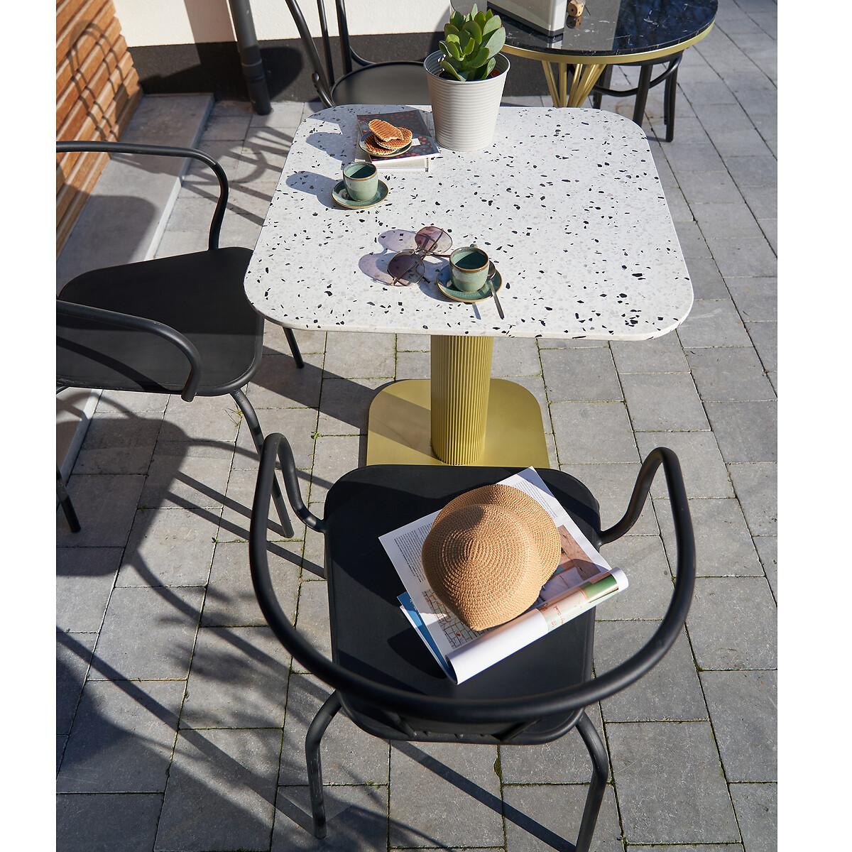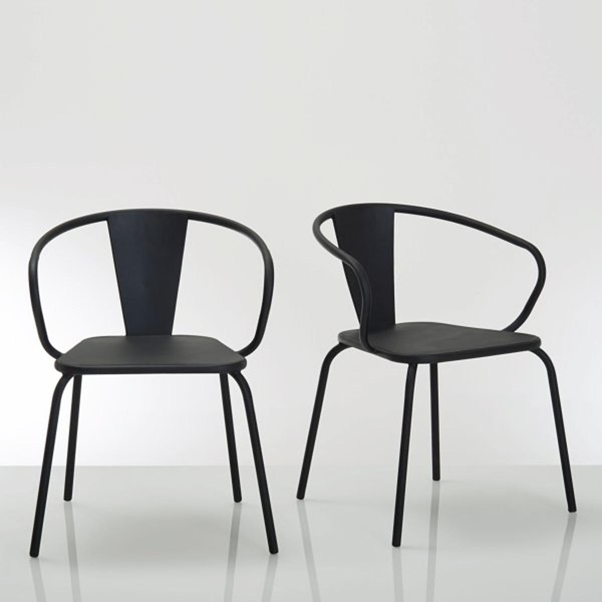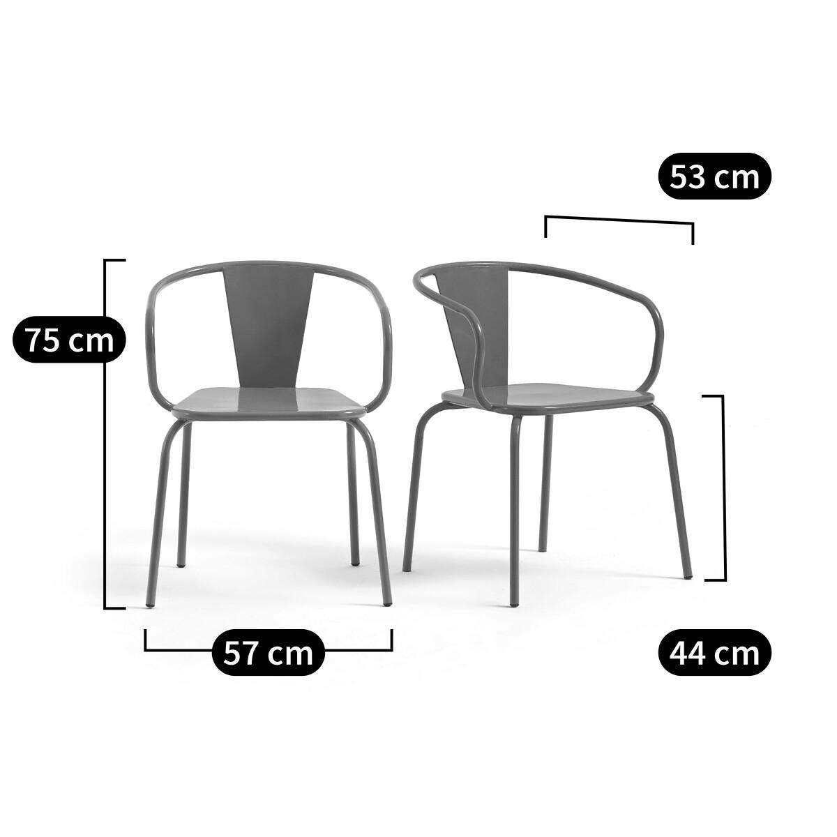 Set of 2 Oblice metal garden chairs. Welcoming and comfortable, these armchairs can be stacked for easy storage. Product Details • Made of steel metal with black epoxy paint finish. Dimensions • Width: 57cm • Height: 75cm • Depth: 53cm • Seat: L45 x H44 x D44cmDelivery:. Sold pre-assembled. Available for home delivery. Parcel dimensions and weight:1 parcel • L85 x H59 x D60cm • 11kg