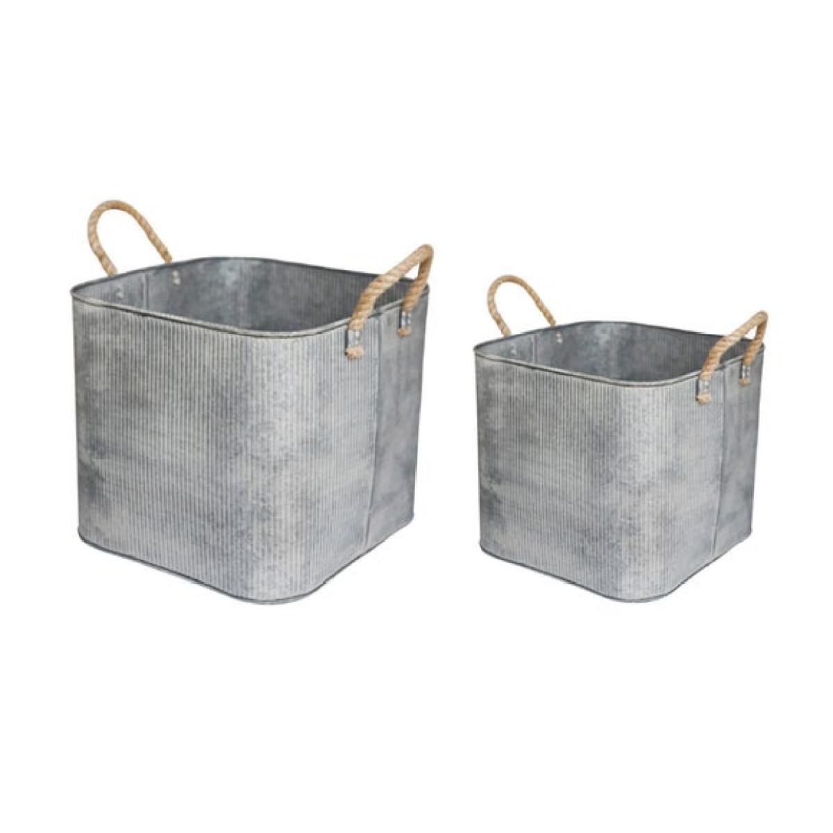 Set of 2 Outdoor Galvanised Rope Handle Square Planters