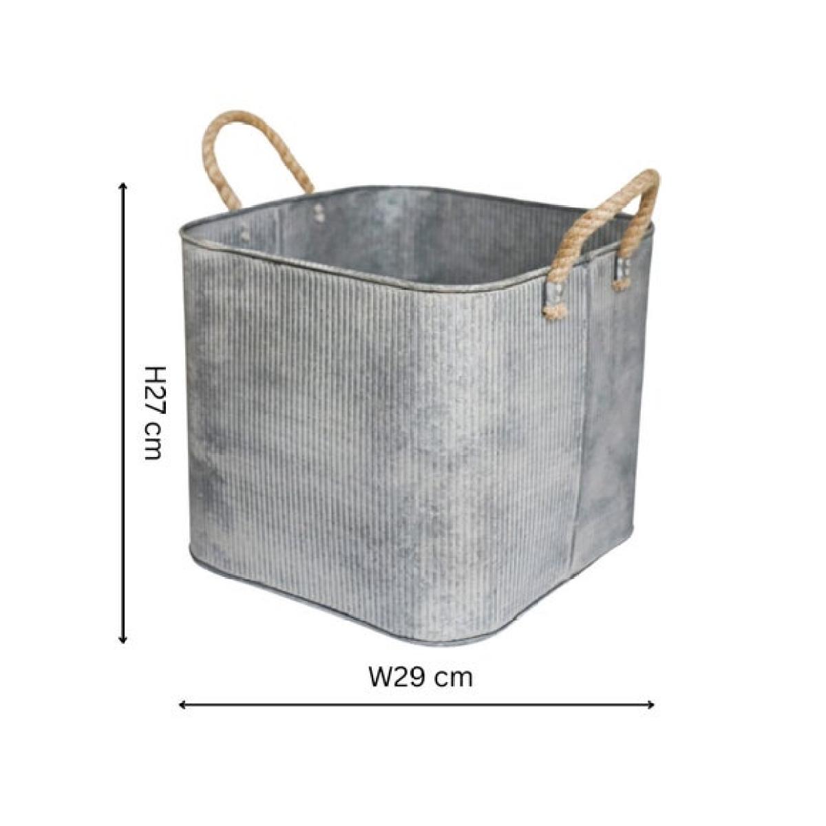 * Set of 2 * Handy rope handles * Crafted from high-quality galvanised iron Add a touch of rustic charm to your garden with this Set of 2 Galvanised Square Planters complete with sturdy rope handles for each movement and styling. Crafted from premium quality iron, they're lightweight, waterproof and built to brave the unpredictable British weather. Frost-proof and UV stable, come rain or shine. Perfect for patios, doorsteps, or tucked beside your garden bench for a cosy corner moment. Their square shape makes them ideal for herbs, blooms or even a mini veg patch. Tough on the outside, lovely on the inside. Simply pop in your favourites and let mother nature do her thing.