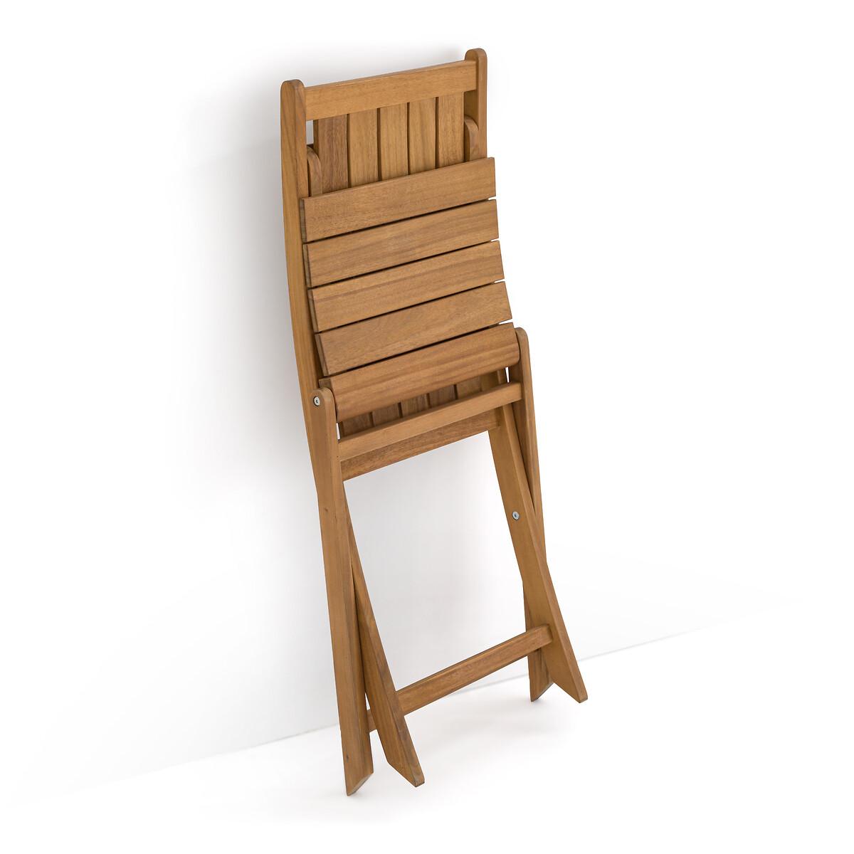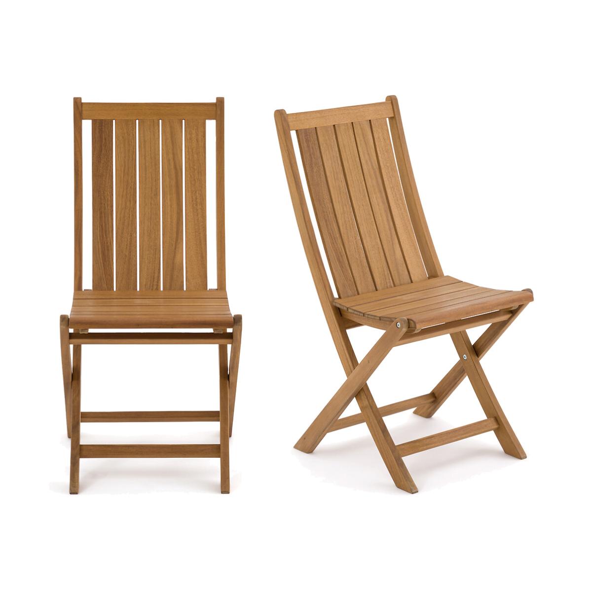An invitation to relax. Designed in acacia, the Palera range allows you to create your own garden furniture set. These garden chairs are folding, for easy storage. Product Details • In FSC® certified acacia, oiled finish • Back and seat in 6.3cm openwork slats • Folding • Max weight 100kg • Sold in packs of 2. Quality Info • Acacia is a wood that offers good mechanical properties (good resistance to insects and fungi) and is resistant to bad weather (alternation of dry and humid periods).Dimensions • Width: 45cm • Height: 92cm • Depth: 56.5cm • Seat height: 45cm • Weight: 5.5kgDelivery:. Sold pre-assembled. Note! Please check that all access points are large enough to accommodate your delivery (doors, stairs, lifts). • WOOD FROM SUSTAINABLY MANAGED FORESTS. FSC® certified wood comes from forests that are environmentally, socially and economically well managed. Dimensions and weight of parcel1 parcel • L113 x H20 x D47.5cm. 13.5kg