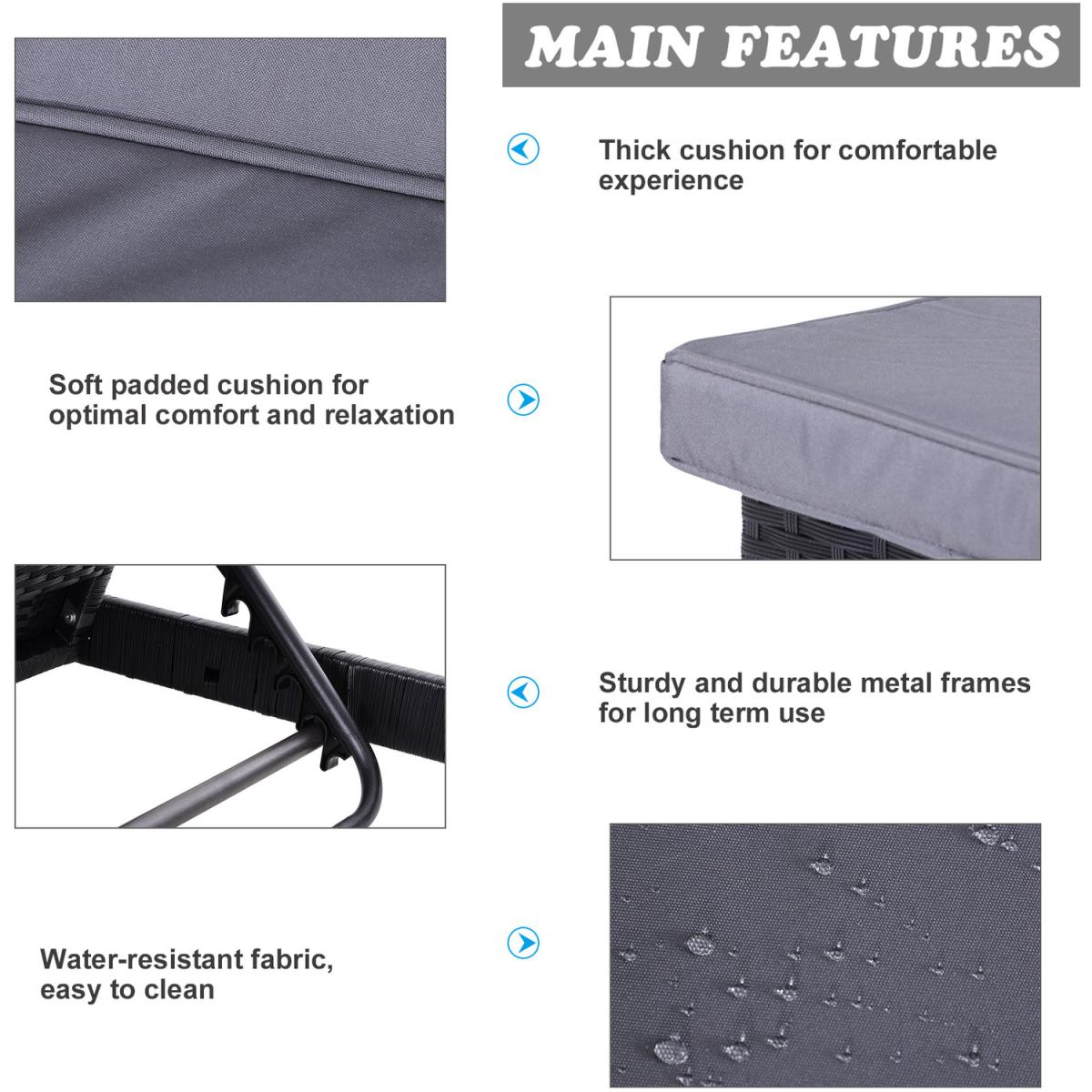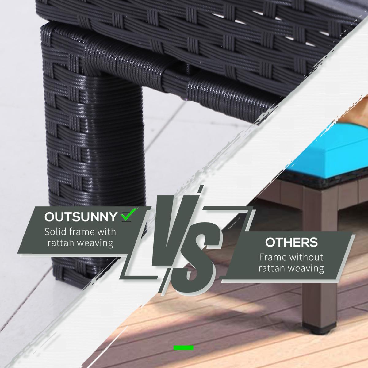 Soak up the sun when it comes out to shine with this two-piece set from Outsunny. Formed of two matching and stylish mixed grey sun loungers, each one is made with a powder-coated metal frame for strength, with wicker rattan wrapped on top for durability and protection outdoors. Adjustable to five different positions for optimal comfort, each lounger is fitted with a padded cushion that covers the full length and width, so once you sink in, you'll never want to get off. The set comes complete with an extra pillow, providing extra comfort and support when wanted. The perfect set to enjoy the sun now as the hotter weather approaches this season.