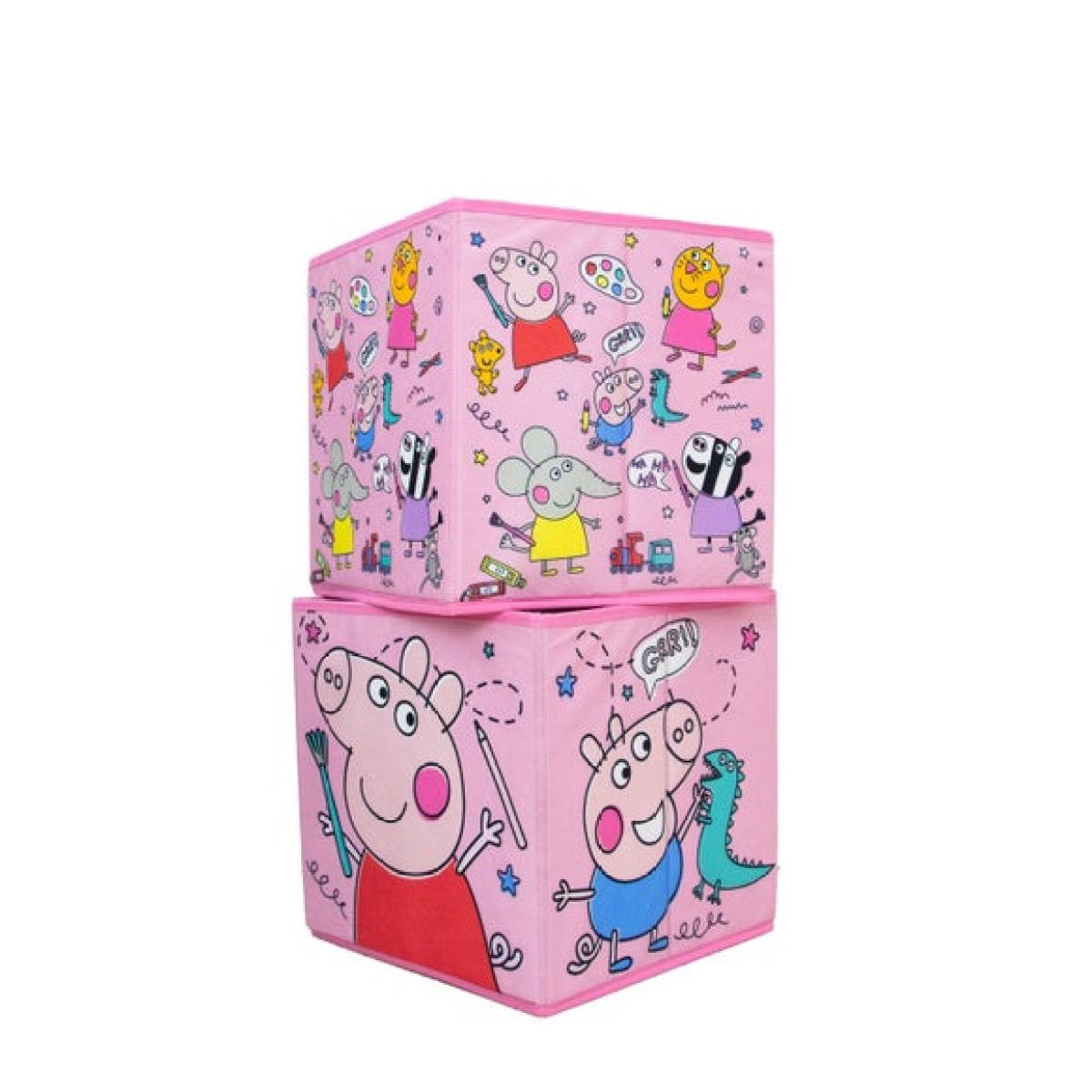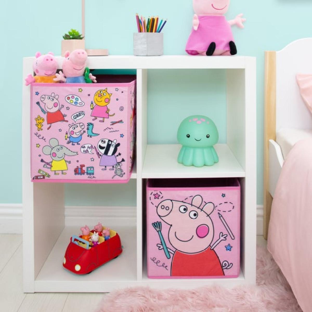 * Includes 2 storage cubes with different character scenes * Features Peppa, George, Candy Cat, Emily Elephant and Zoe Zebra * Great for toys, books and games * Folds flat for easy storage Make tidying up part of playtime with this colourful Peppa Pig storage set. Featuring Peppa with her paintbrush and George with his dinosaur, these boxes are full of personality and perfect for little fans. With plenty of space for toys, books and games, they are a great way to help your child keep their room neat. The bright designs include Peppa, George and their friends getting creative with colouring and painting.