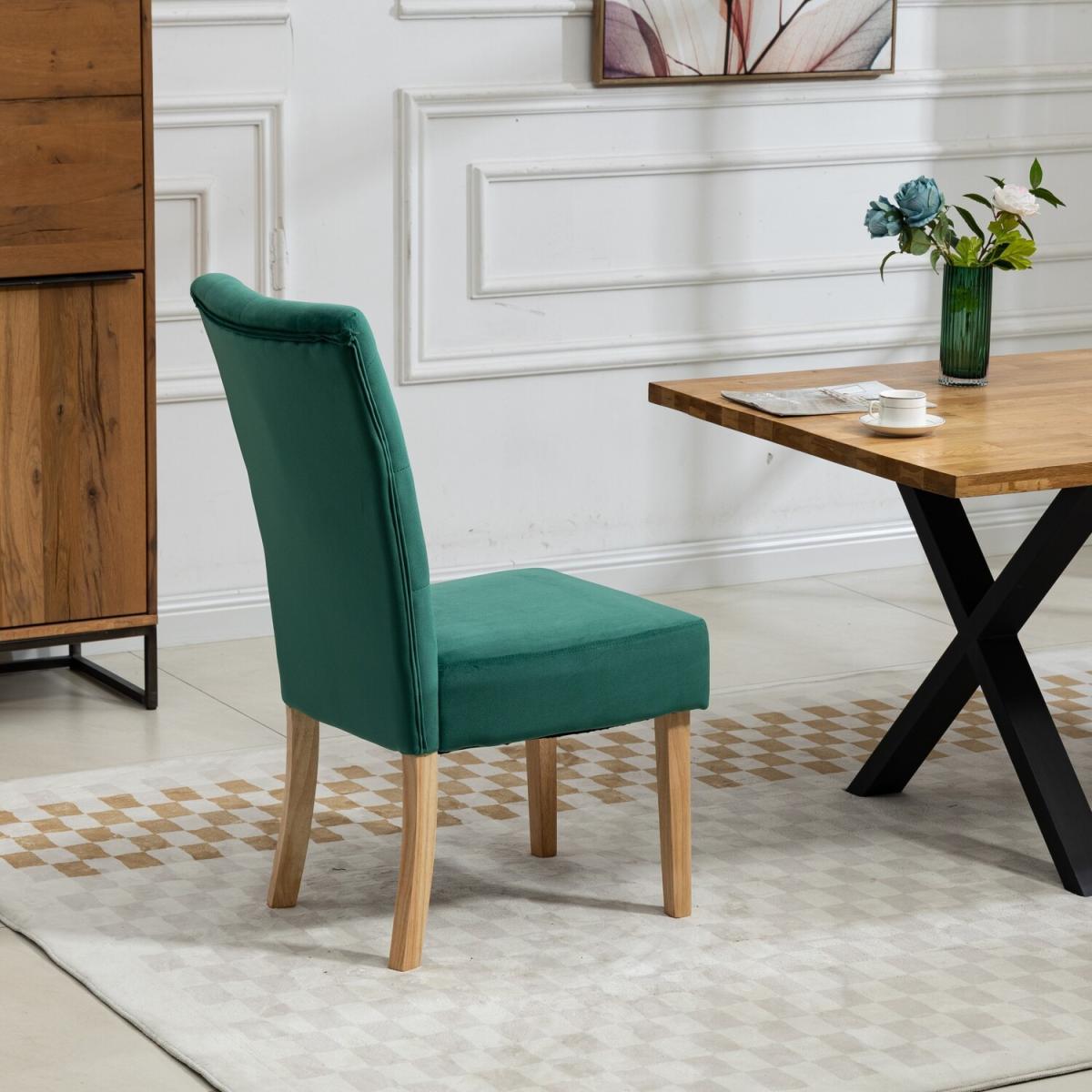 Indulge in an elevated dining experience with our alluring pair of dining chairs, featuring a high studded back that infuses a sense of regal charm into your dining area. Wrapped in luxurious velvet upholstery, these chairs are meticulously built around a solid wooden frame, ensuring lasting quality and exceptional comfort. The pine-coloured wooden legs not only provide reliable support but also bring a touch of natural beauty to your space. Effortless self-assembly is guaranteed through our user-friendly design, complemented by efficient delivery for a seamless experience. Explore a range of captivating colours to seamlessly match your decor or create a captivating contrast. Elevate your dining ambiance with this sophisticated and functional pair of dining chairs, redefining your dining moments through a perfect blend of elegance and ease.