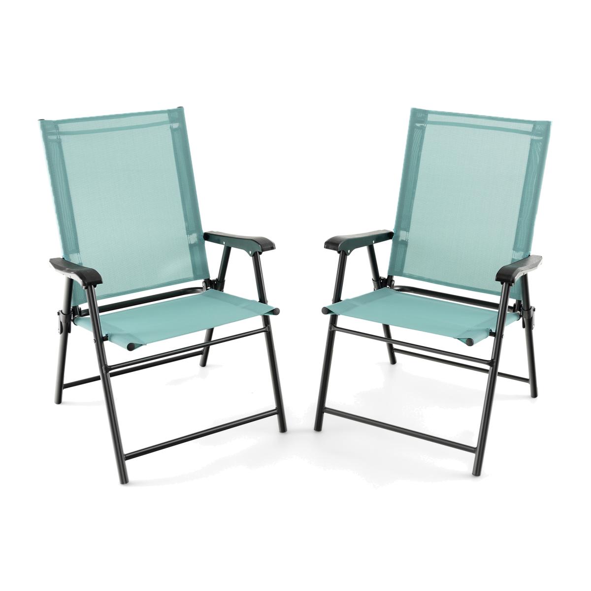 These patio folding chairs are gonna be your perfect choice for your outdoors! When you receive the package, just unbox, take these chairs out and unfold them. These sling chairs are ready to use! These patio dining chairs feature breathable fabric to avoid stuffiness on summer days. And the sturdy and rustproof metal frames tell you how stable they are. If you wanna fold these patio chairs, please unlock the fixing devices. Then these chairs will be immediately folded for easy carrying and storage.